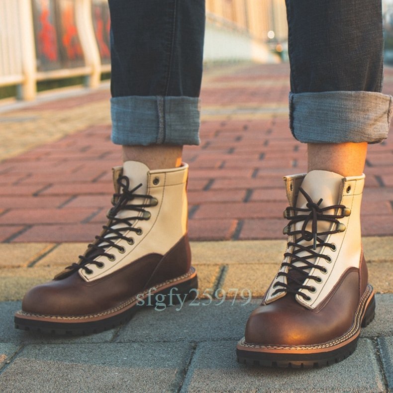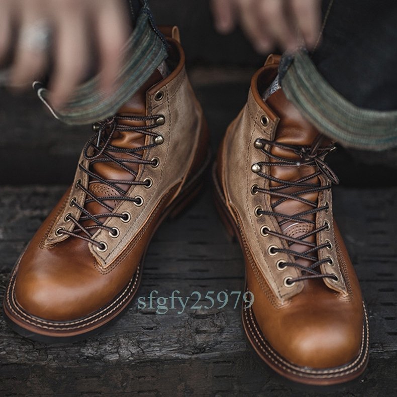 A71☆新品 バイク靴 本革 ブーツ ウォーキングシューズ ショートブーツ シューズ メンズ 大きいサイズあり 24.5~27cm