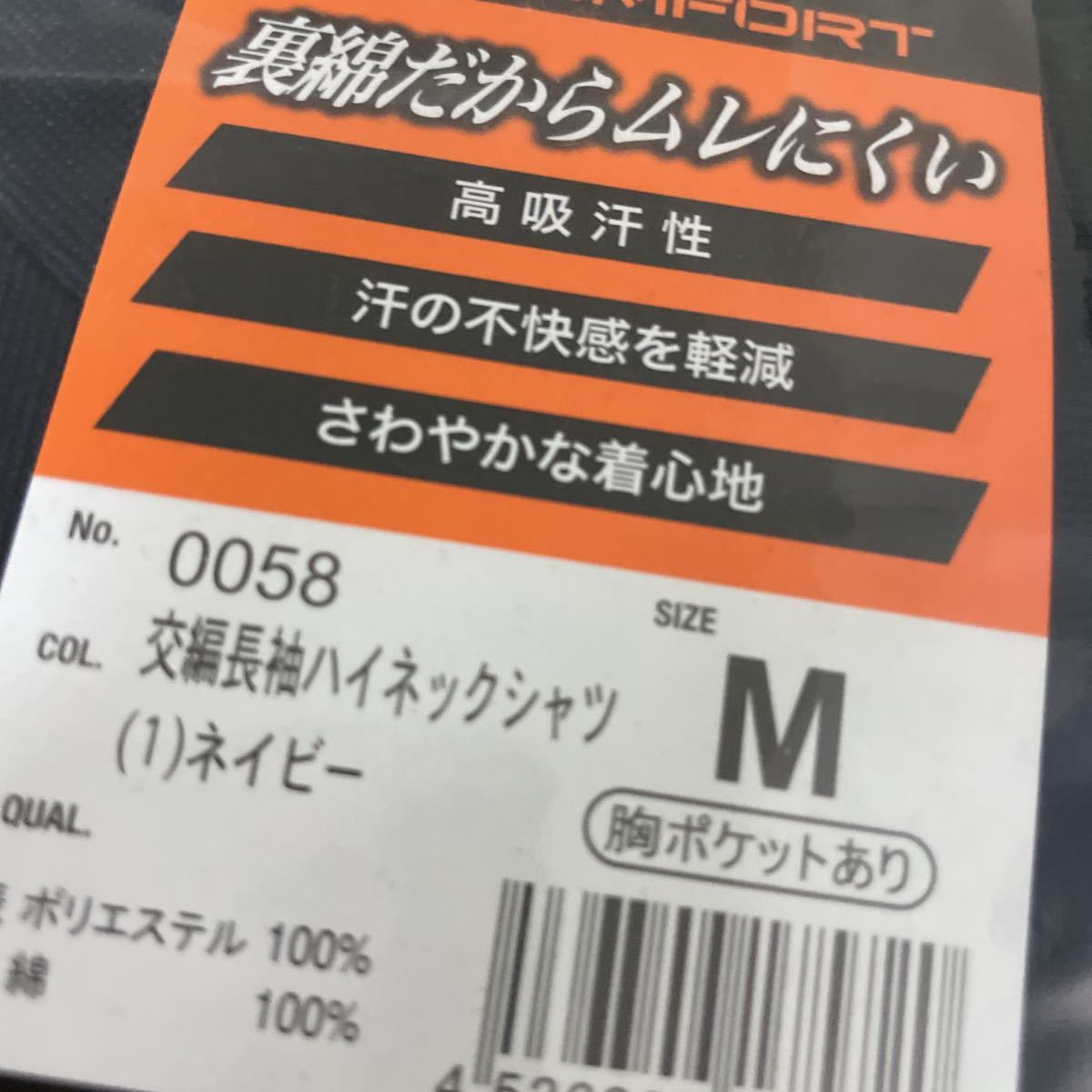 特長裏綿素材で蒸れにくいハイネックシャツ