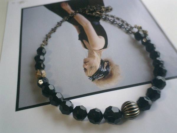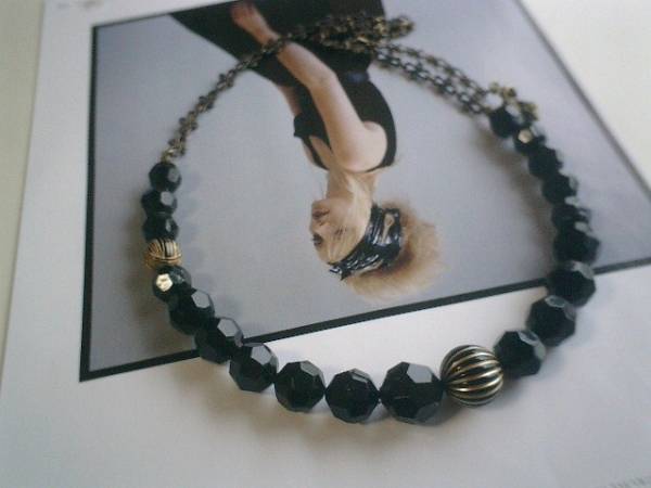 パンク・ガール・・シリーズです♪黒の魔法・・シックな黒の樹脂ビーズのネックレスです♪モダンビーズやお花のチェーンを合わせてアンティーク・モダンな表情です♪樹脂ビーズは12ミリから16ミリ位までのグラデーションです♪大きめですが樹脂なので軽い付け心地でお楽しみいただけます♪長さは70センチ位で調節自由です♪チョーカー風にされても素敵です♪お揃いのブレスレットも出品しています♪シンプルで飽きのこないいつまでも着けられるデザインを考えて作りました!ハンドメイドをご理解頂いてノークレーム、ノーリターンでお願いします