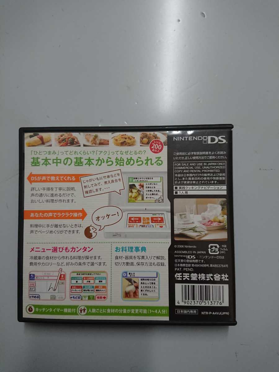 【DS】 しゃべる!DSお料理ナビ ブランド:任天堂 発売日:2006/07/20 中古です。ソフト、取説、ケースの出品です。中古ですので傷汚れあります。発送は定型内270円サイズです。中古ですのでノークレムノーリターンです。