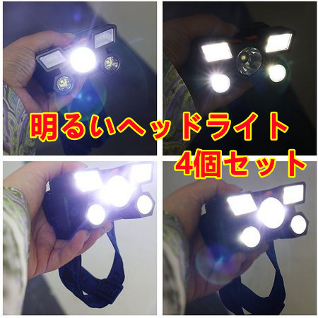D413K-4個セットXY501  ヘッドライト usb充電式 1500ルーメン4モード 5LED 高輝度 明るい ヘッドランプ 軽量 防水 防災登山釣り