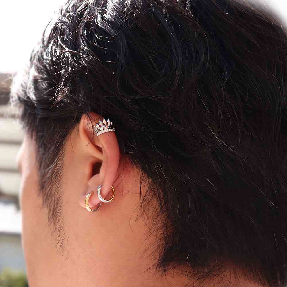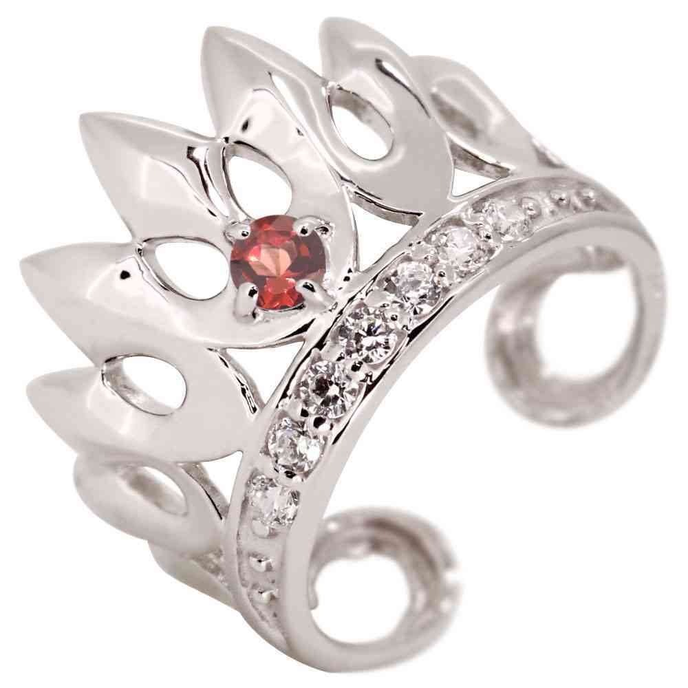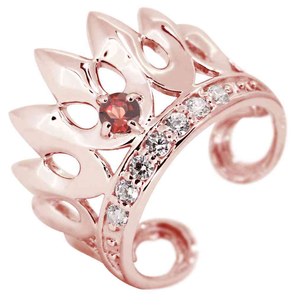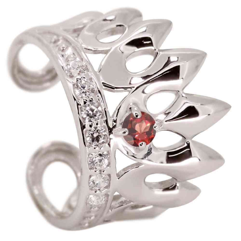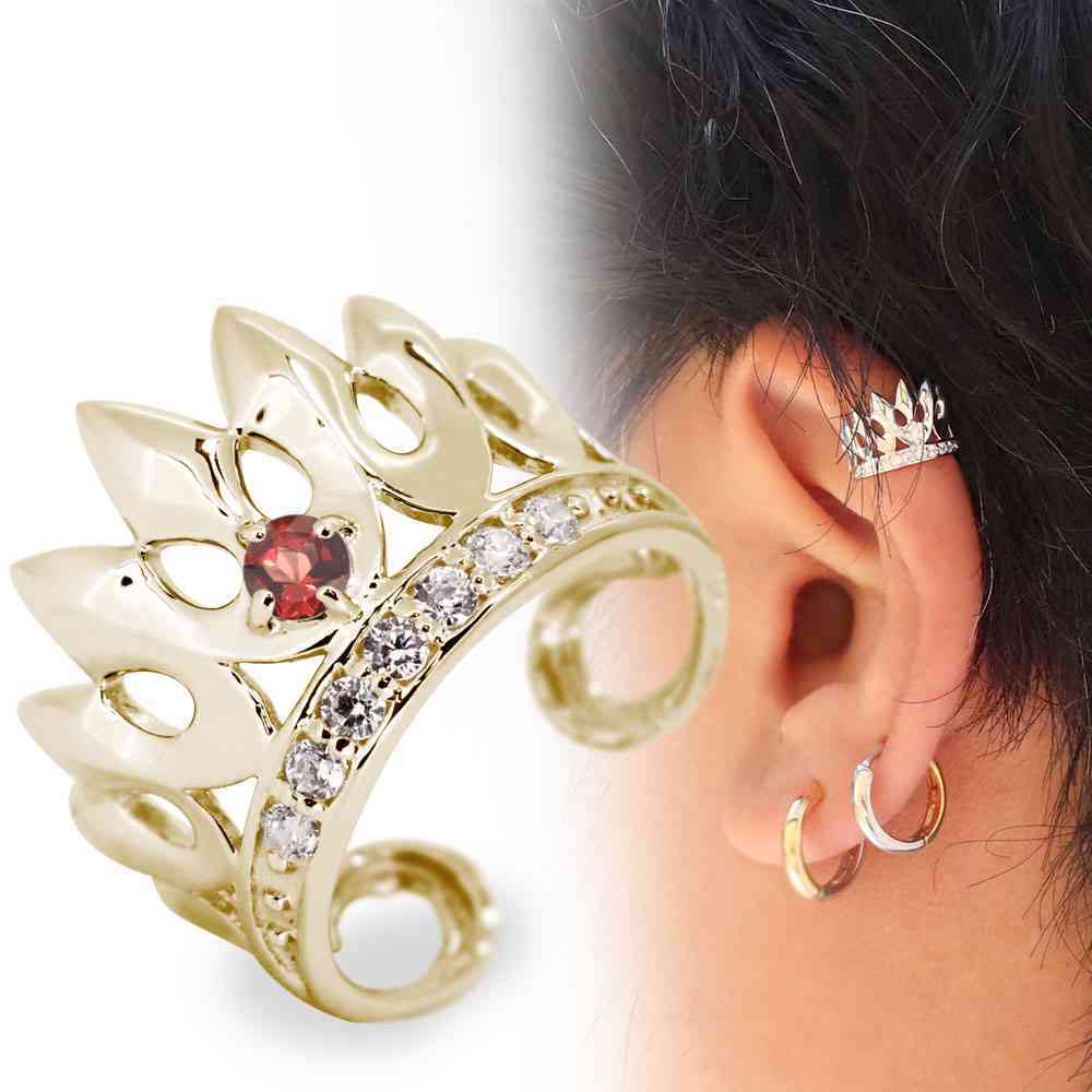 1月誕生石ガーネットを使用した18金製の、王冠(クラウン)モチーフメンズイヤーカフです。