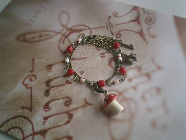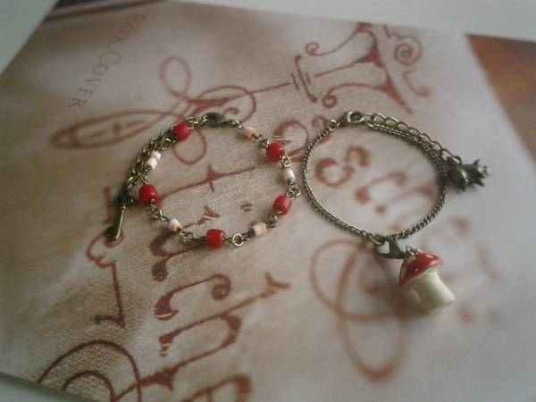秋色アート・・シリーズです♪童話の国から・・珊瑚とアンティークビーズと小さなキノコさんのブレスレット2本セットです♪キノコさんは取り外しが出来ますので付け替えたり本体だけのシンプルな形でもお楽しみいただけます♪キノコさんは15×13ミリ位です♪珊瑚とアンティークビーズのブレスレットは全長23センチ位で調節自由です♪華奢なチェーンのブレスレットは16センチ+アジャスター6センチで最長22センチ位です♪お揃いのネックレスも出品しています♪シンプルでいつまでも着けられるデザインを考えて作りました!ハンドメイドをご理解頂いてノークレーム、ノーリターンでお願いします