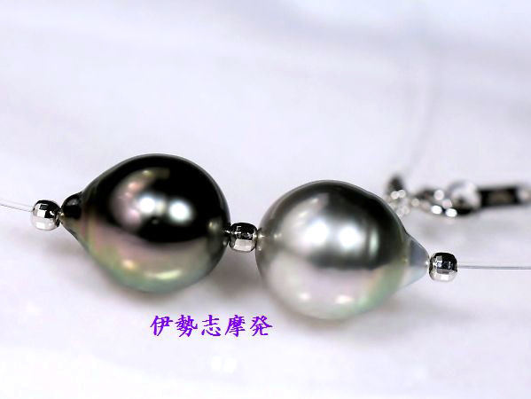 【真珠の種類】 タヒチ黒蝶真珠 【珠サイズ】 14,2㎜x幅11,3㎜ 13,6㎜x11,25 【珠の形状】 【色】 シルバーブラックにグリーンやピンク 【巻き】 非常に良い◎ 【照り】 非常に良い◎ 【キズ】 ほとんど無し 【エクボ】 ほとんど無し 【金具の材質】 引き輪シルバー製・フルオロカーボン100%の糸 【デザインの大きさなど】全長42㎝弱 ◆タヒチ黒蝶ナチュラル(天然色)真珠、透明感のある巻き厚の特大珠2個を使ってお作りしました存在感のあるスルーネックレス♪◆ 眩しい煌きを放つ強烈に眩しい巻き珠はお顔までも映し込むミラータッチの輝き!きめも細かくすべすべで綺麗です。特に目立つ瑕も無く、半端無い眩しい光沢を放っています。 フルオロカーボン100%の糸でお作りしましたのでアレルギーや汗も気にせずお使い頂けます。透明糸なので特大珠が尚大きく感じます。 真珠と真珠の間に挟んだ3個のSV製ミラーボールもきらきらと輝き上品な中にも高級感がありますよ。実物はかなり大きくインパクトのある珠なので結婚式やパーティーのお席にもどうぞ♪ 存在感のある特大珠でも重くならずとても重宝するお洒落なネック、色んなシーンでお役立て下さい。 | ||||||||