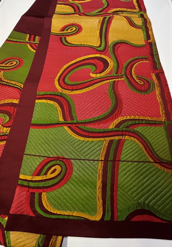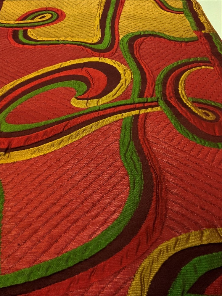 ふくれ織でモダンなアートのような文様が織り出されています。