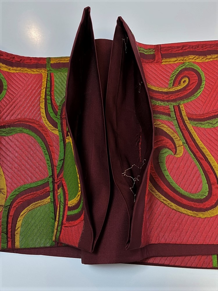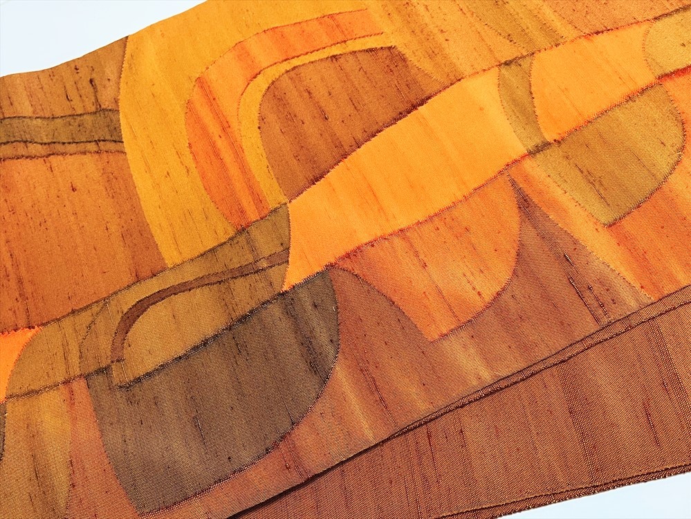 リサイクル帯 袋帯 まとめて2本 すくい織 ふくれ織 モダン 個性的 美品 橙 カラフル リメイク 素材