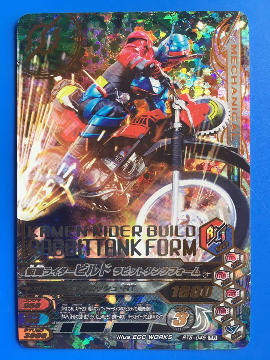 仮面ライダー、ガンバライジングの第RT5弾から、スーパーレアカード、No.045《仮面ライダービルド・ラビットタンクフォーム》の登場です。発送は、普通郵便を利用します。(特にご希望のない場合)おとりまとめも可能ですが、送料に変動する場合がございます。また、送料のご請求は、自宅での計量を基準にご請求させていただいておりますので、実際の金額と差異が出る場合もございます。予めご了承ください。他にも多数出品中です。まとめてこの機会にいかがでしょうか?ご質問お待ちしております。