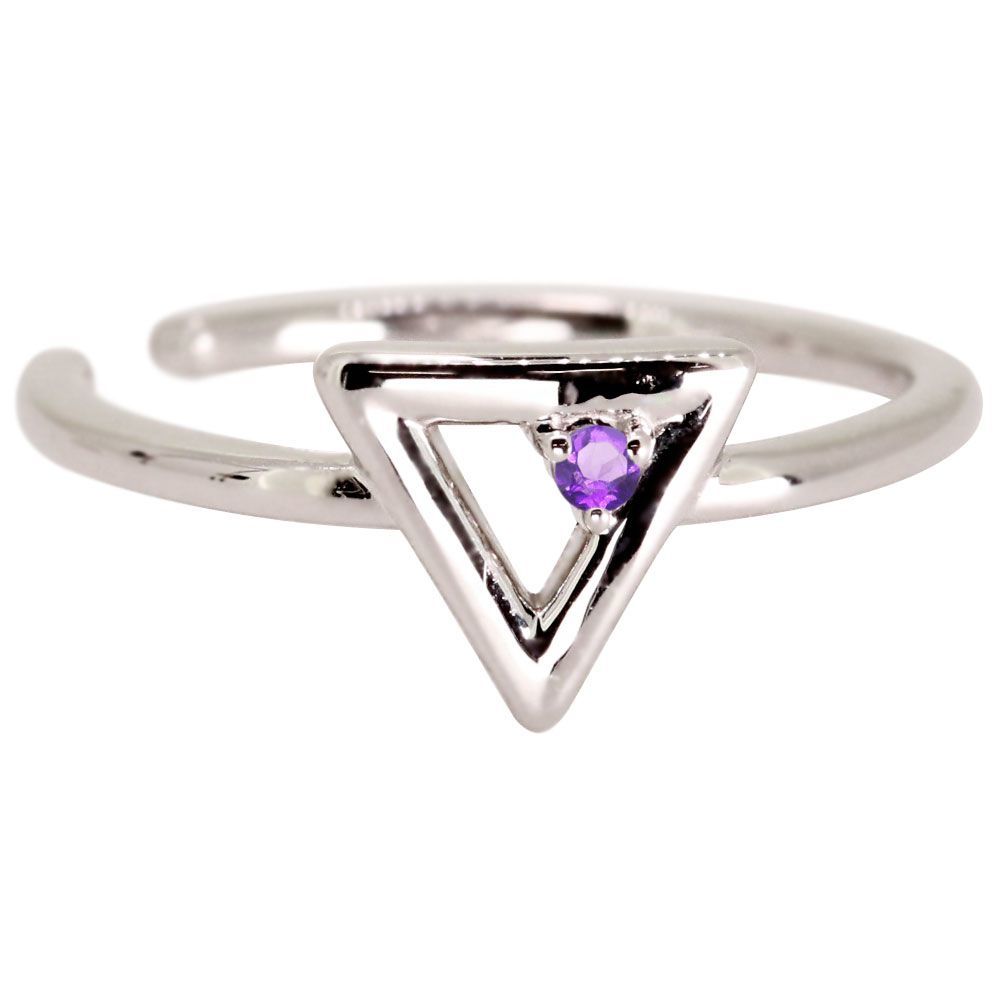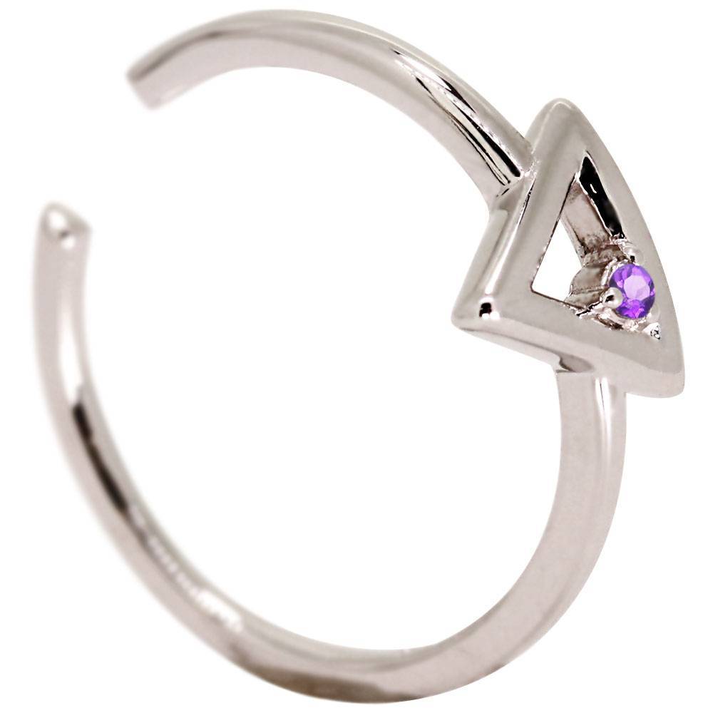 2月誕生石アメジストを使用したプラチナ製の、幾何学デザイン(三角形)のイヤーカフです。