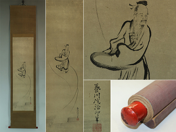 | №2211022【真作】狩野養川院【仙人図】◆紙本◆合箱◆掛軸 | |