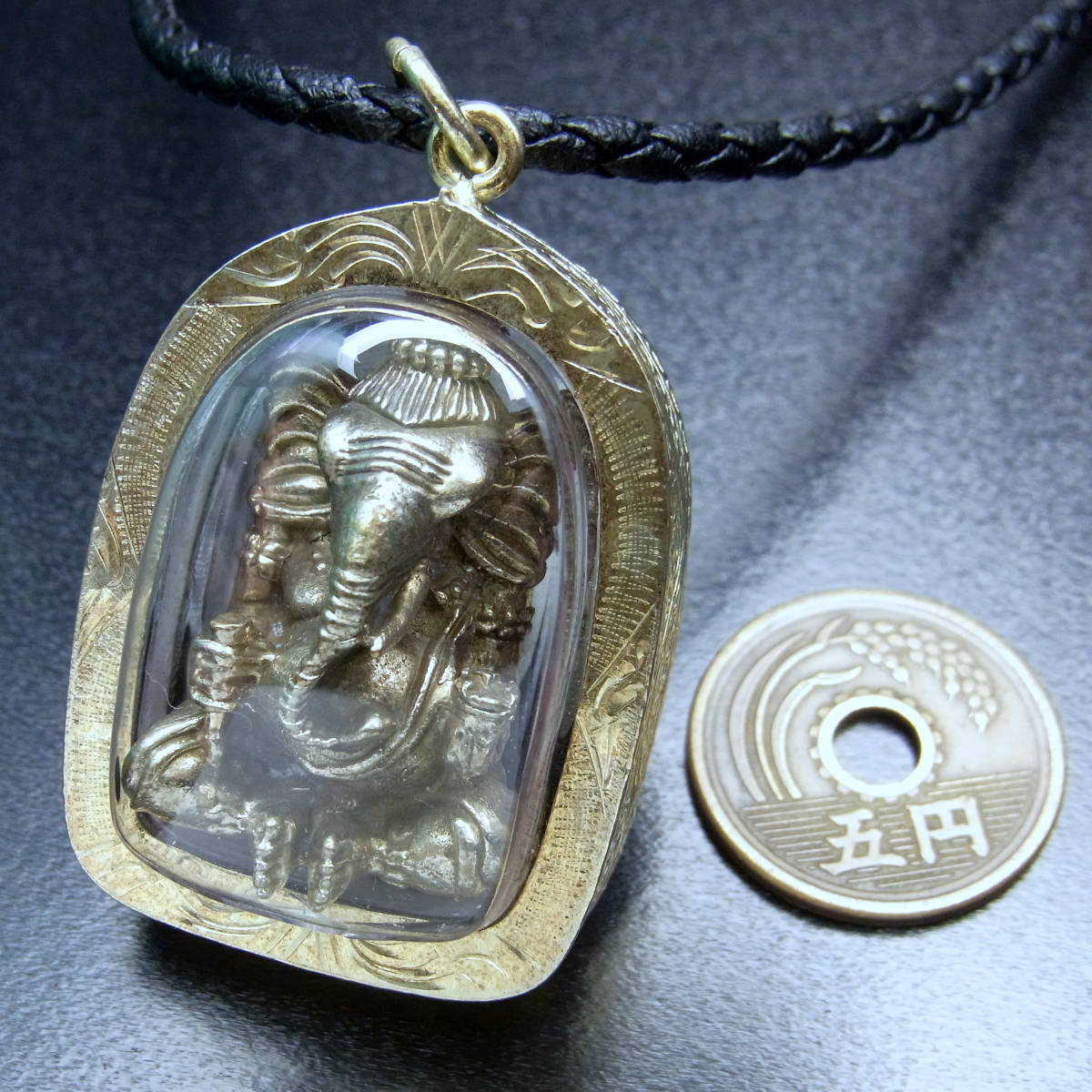 【No,14】金運と商売繁盛 インドの神様 ガネーシャのペンダントヘッド プラクルアン