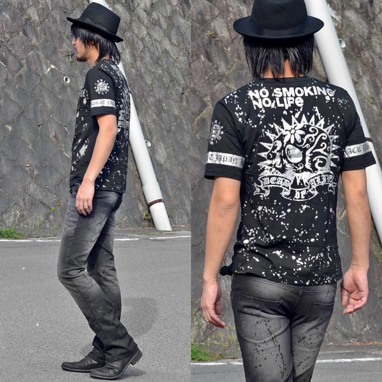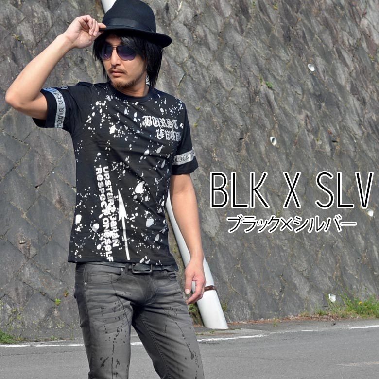 【閉店セール】Tシャツ 半袖 メンズ 半袖Tシャツ 半袖Tシャツ オラオラ 悪羅悪羅 70559 ブラック×シルバー L