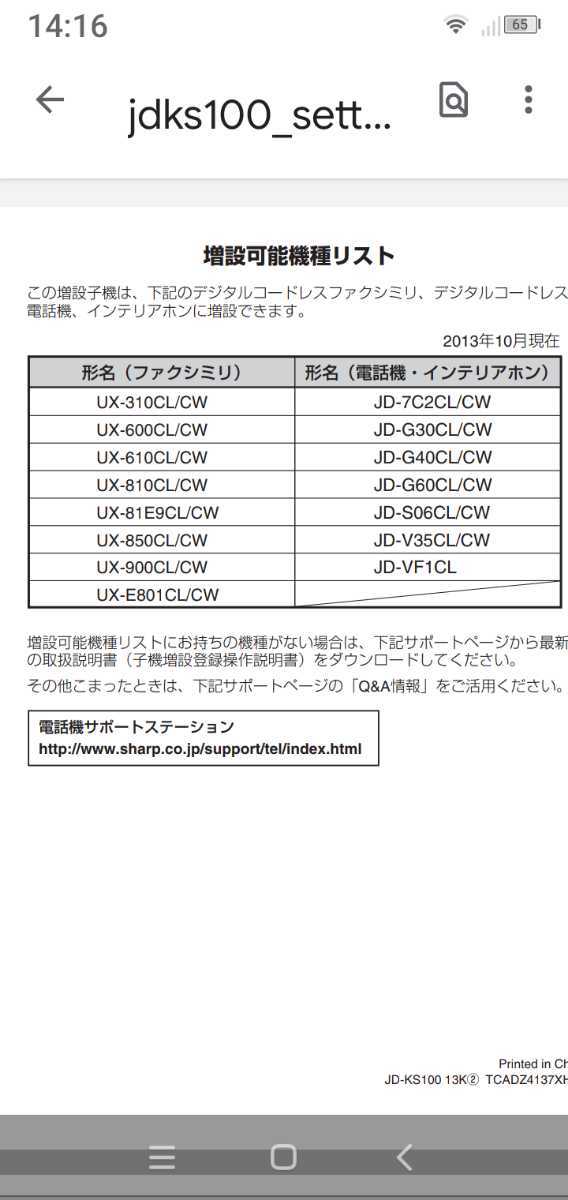 対応親機種は、写真を参照下さい。その他対応親機種 UX-81E9CL/CW UX-350CL/CW JD-G30/31/32/40/55CL/CW