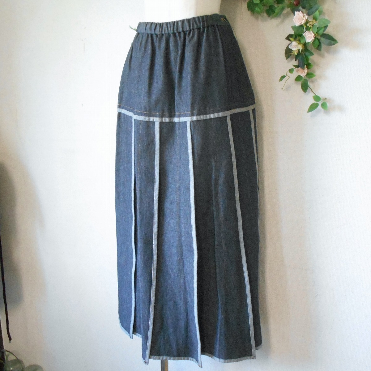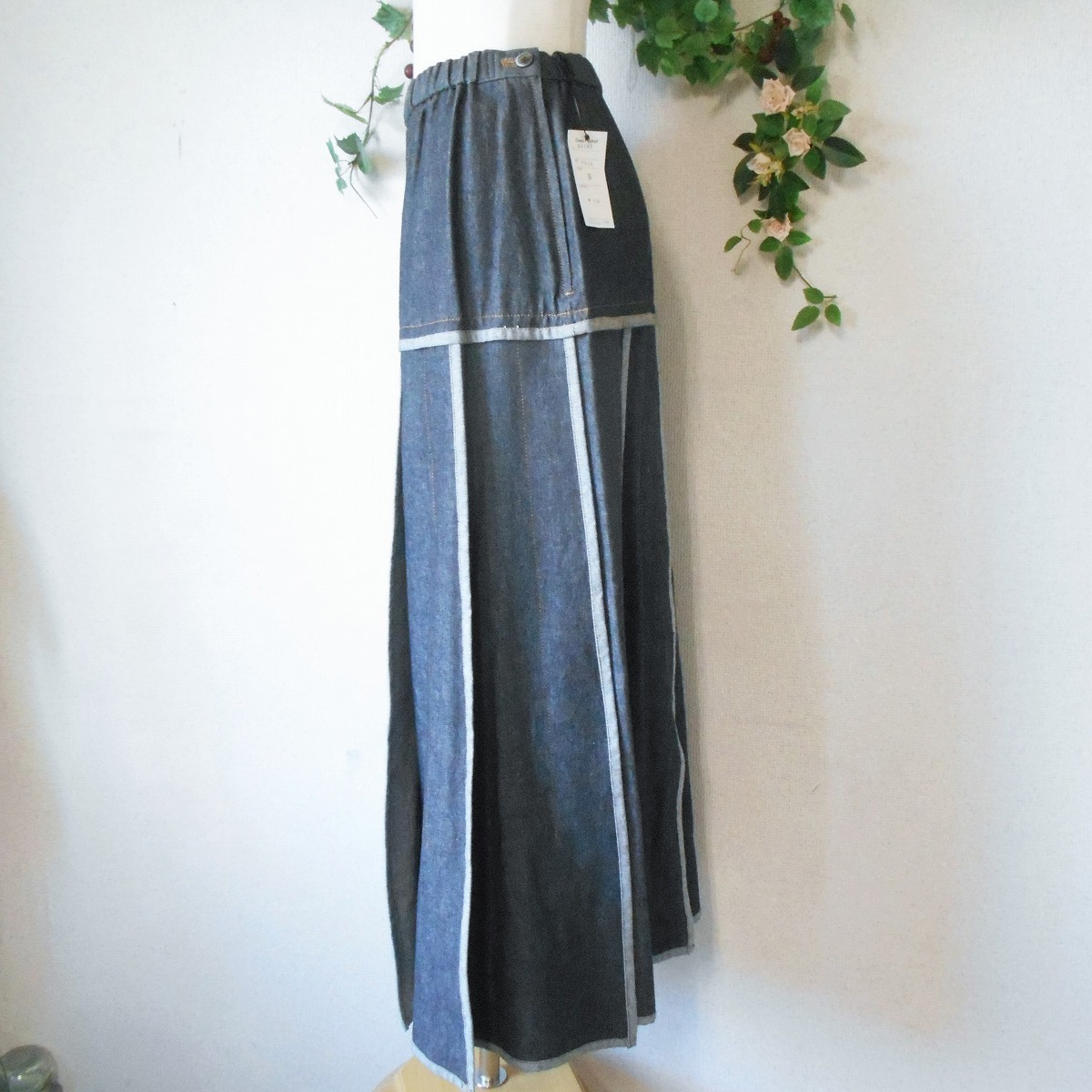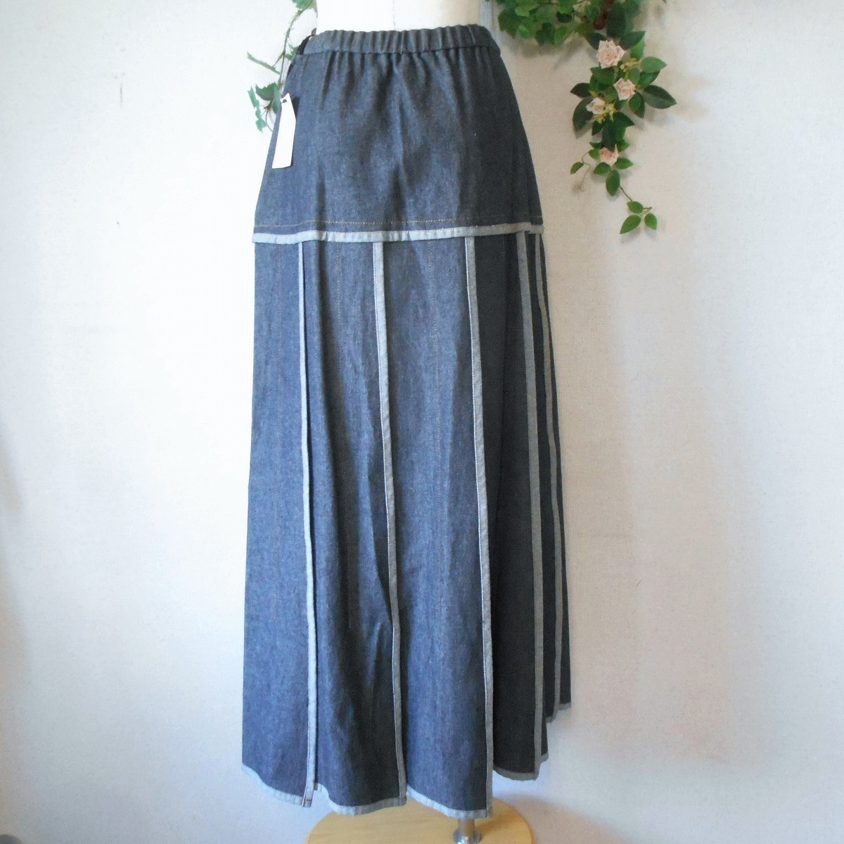 新品 タグ付き ディープポケット Deep Pocket 幅広プリーツ デニム ロング 丈 スカート 日本製 FREE
