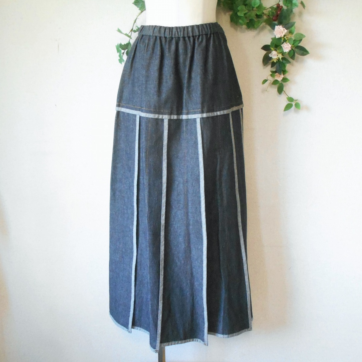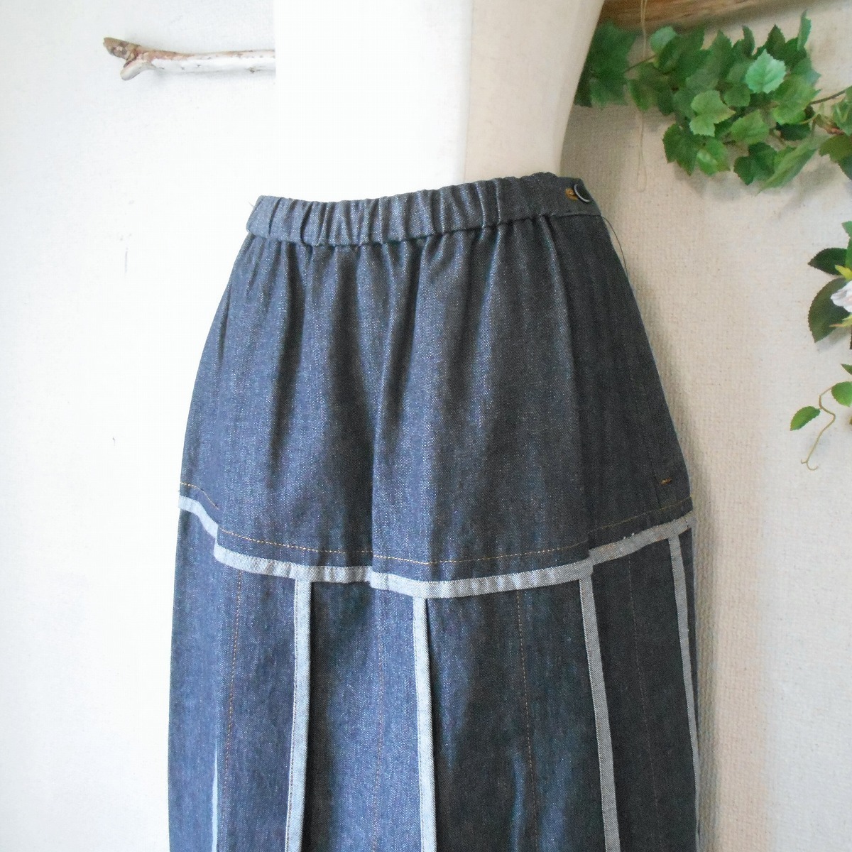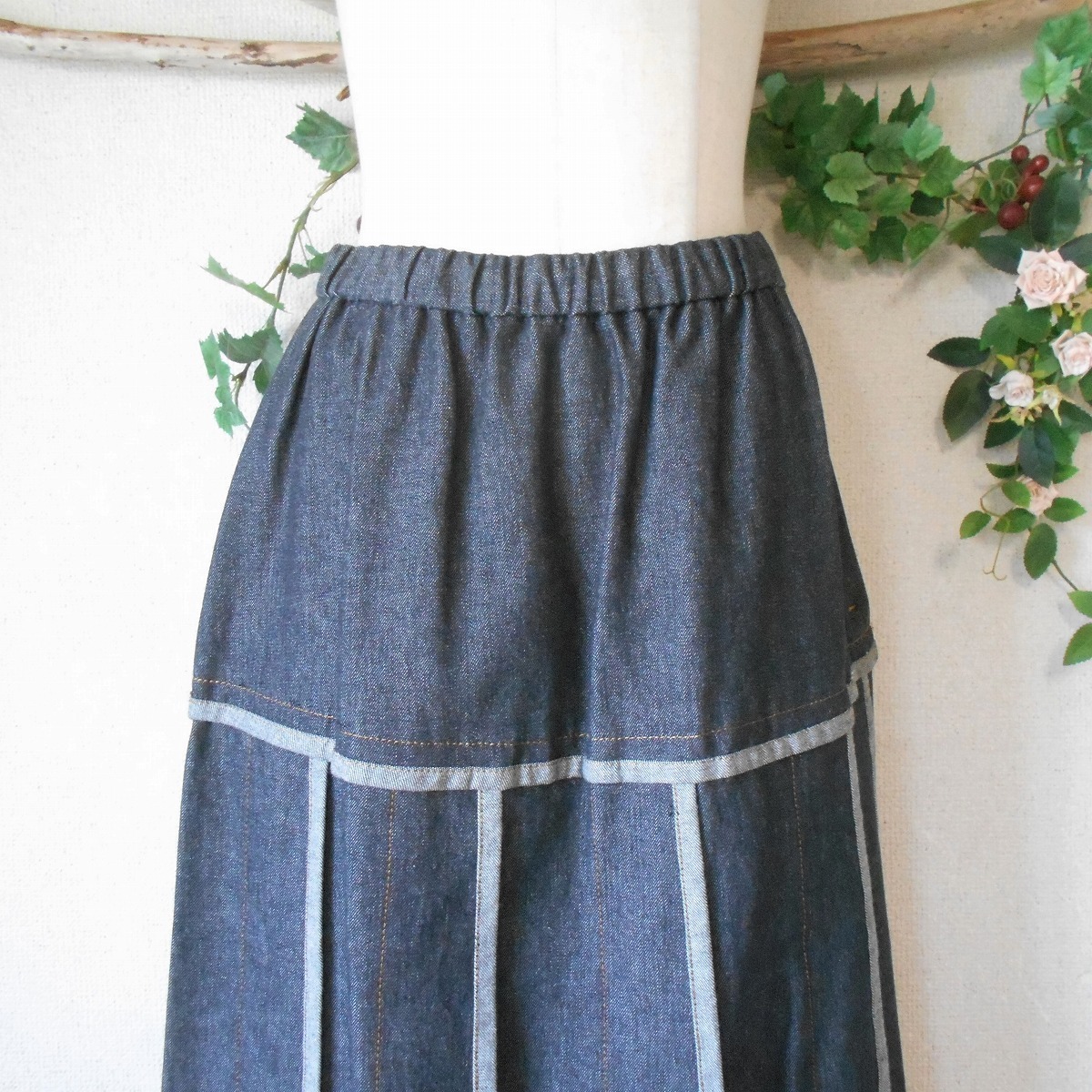 新品 タグ付き ディープポケット Deep Pocket 幅広プリーツ デニム ロング 丈 スカート 日本製 FREE