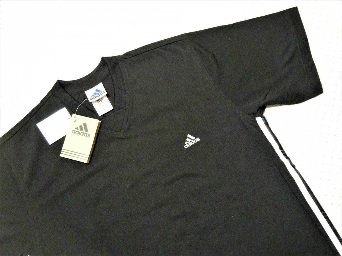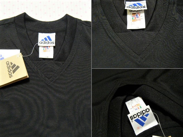 アディダス adidas ジムトレーニング&カジュアル用高機能VネックTシャツ 半袖 黒色 サイズ O 吸汗速乾/ストレッチ機能 @1999年製品