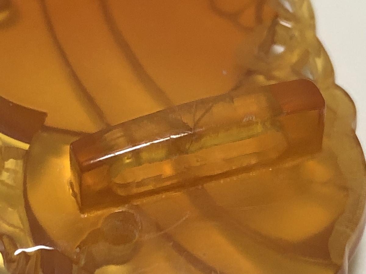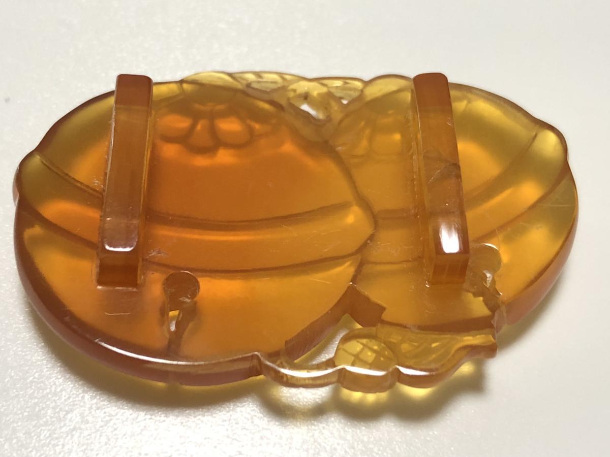 白甲の本鼈甲を使用した、鈴細工の帯留めです。鼈甲部分に欠けや虫食いはありませんが、裏の帯紐を通す部分に1ヵ所ヒビがあります。使用上は問題ありません。