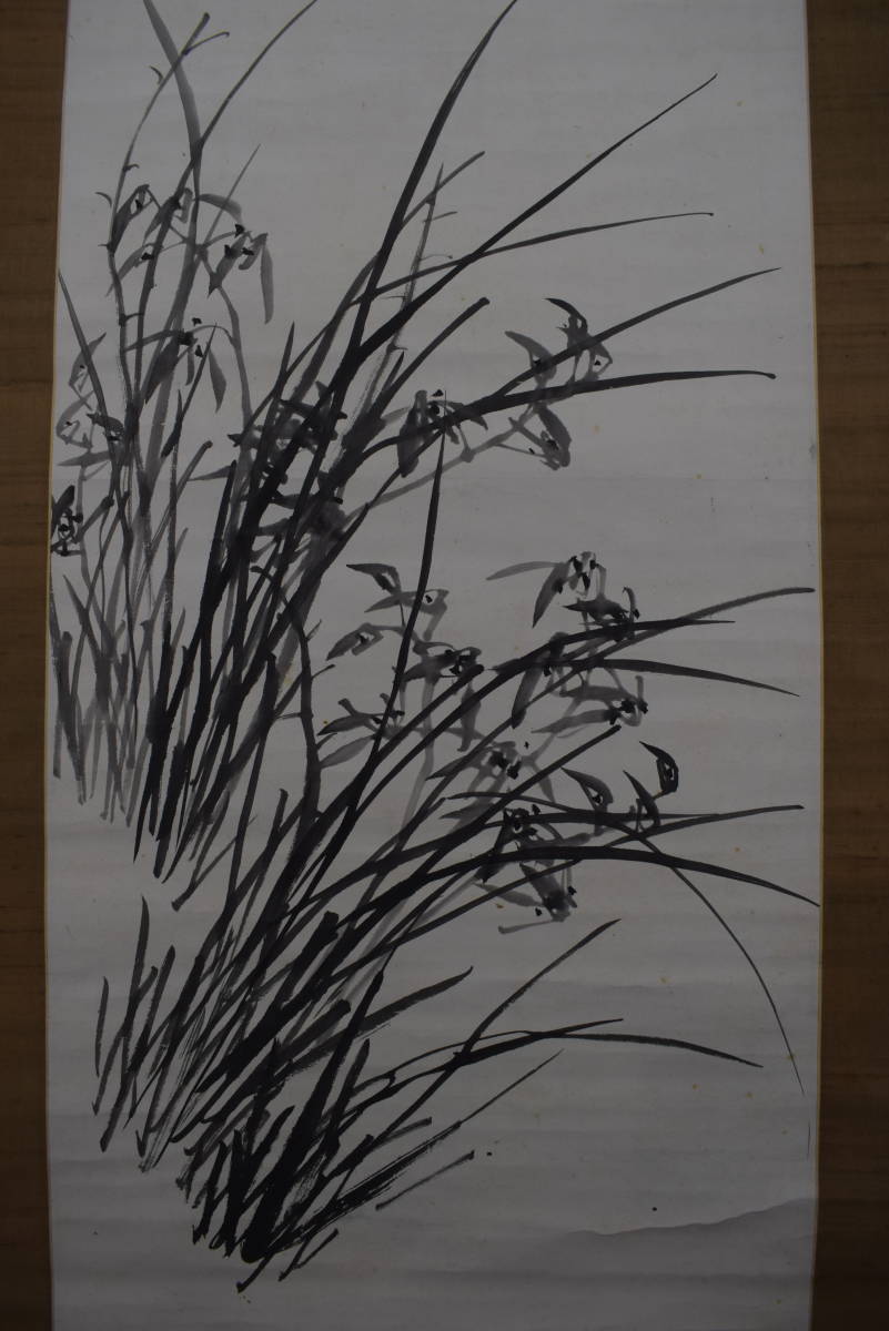 真作/柚木玉邨/蘭之図/蘭画賛//掛軸☆宝船☆Z-440