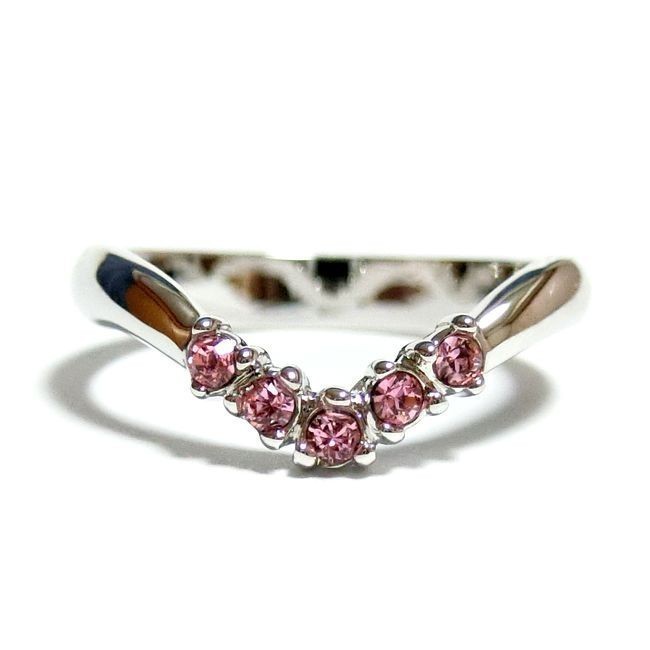 指を細く長く見せる効果のあるV字リングを、スワロフスキークリスタルで飾りました!