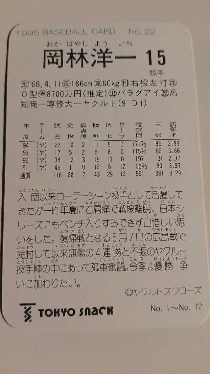 伝説のエース岡林洋一!ヤクルトスワローズ1995カルビー22 東京スナック |