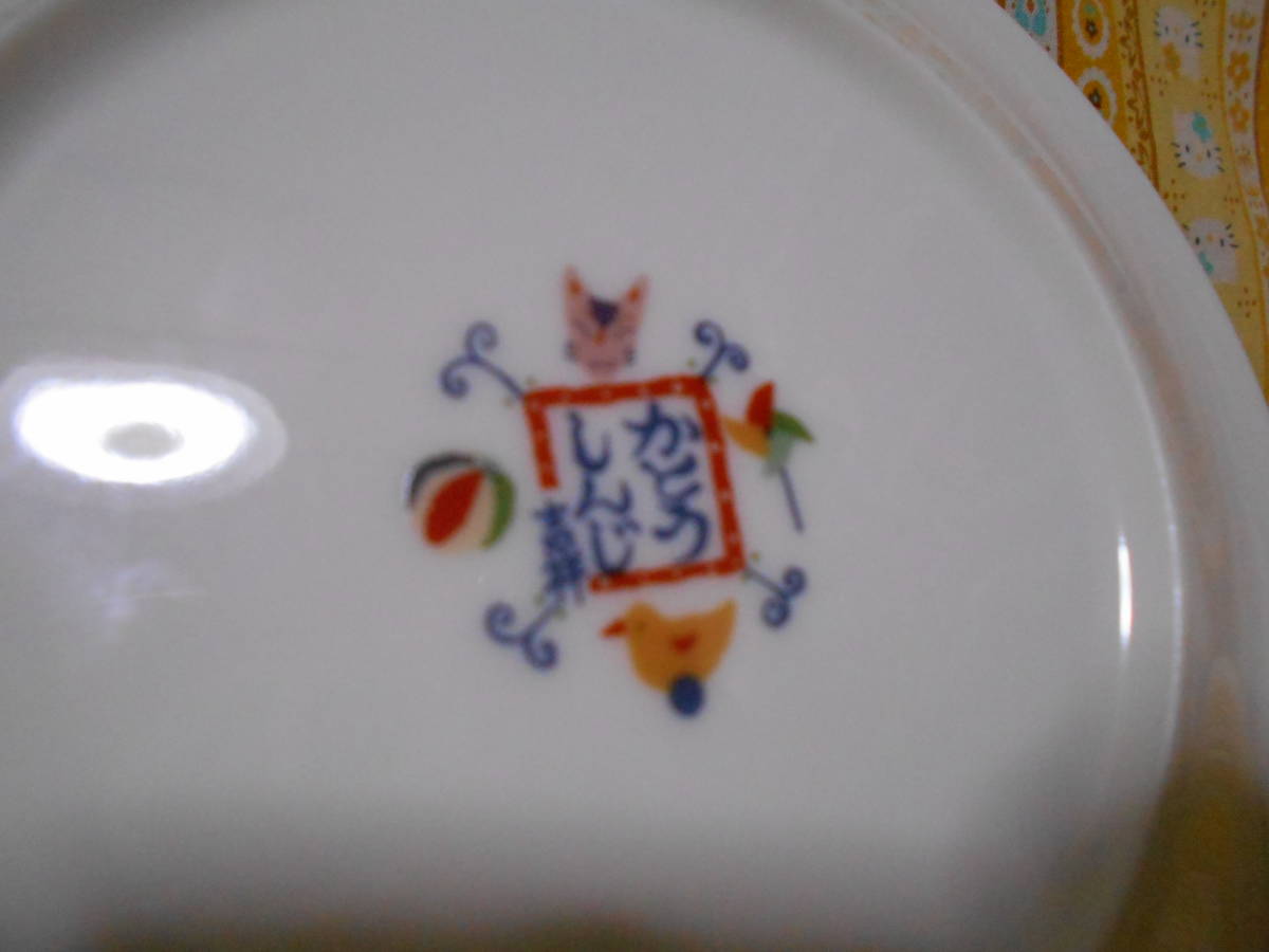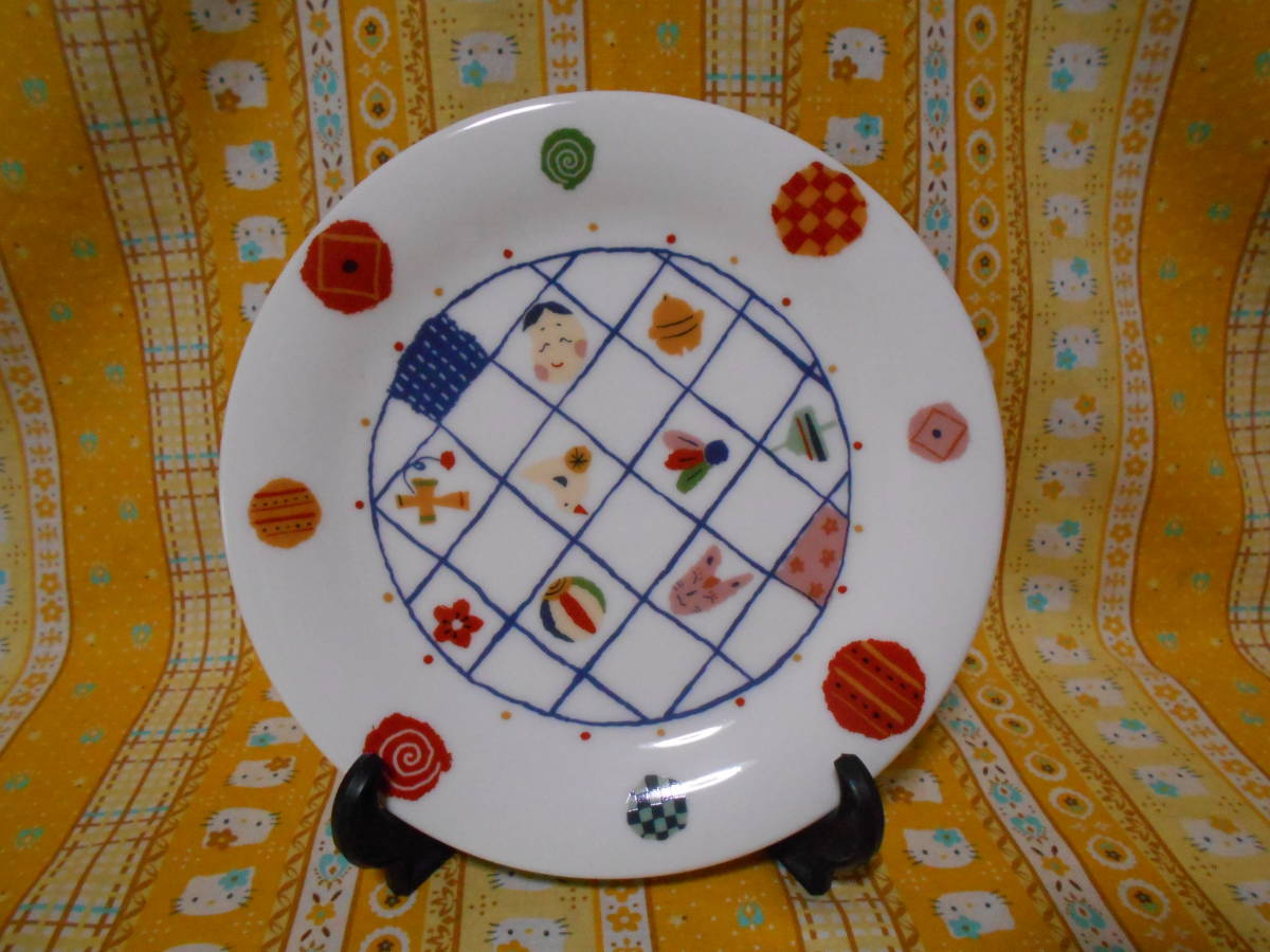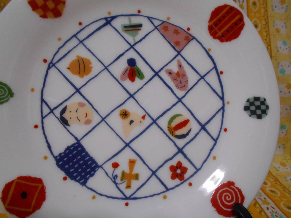 ♪カトウシンジ美品陶器製プレートお正月柄独楽&けん玉和柄