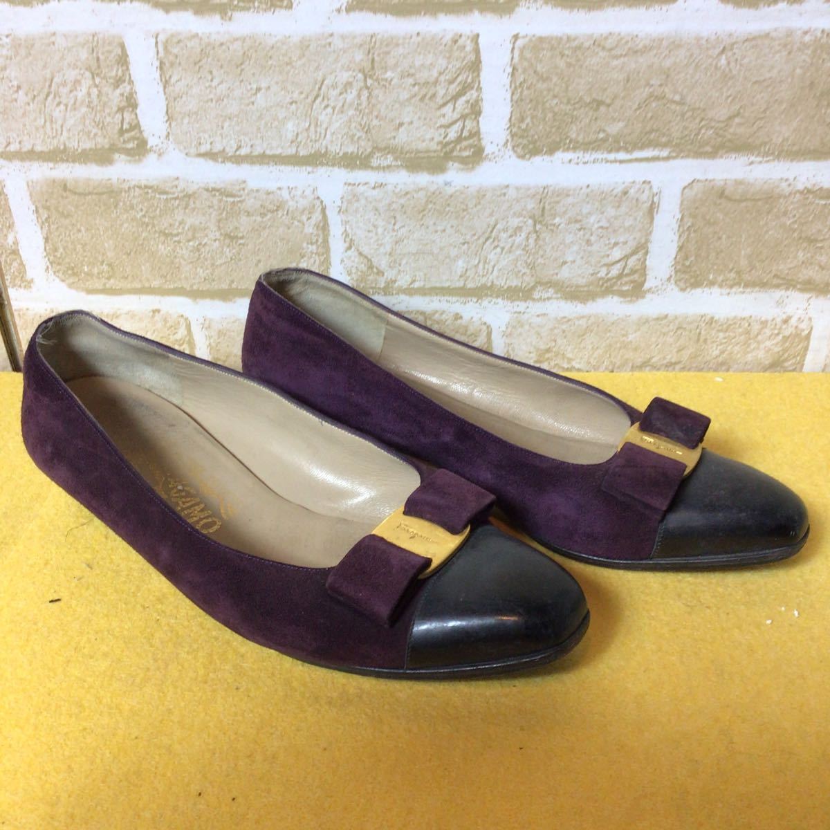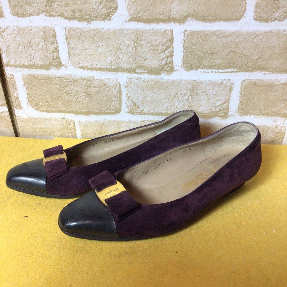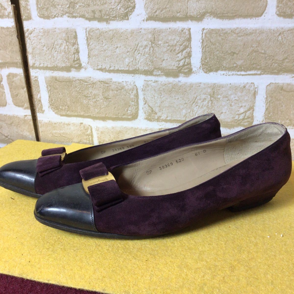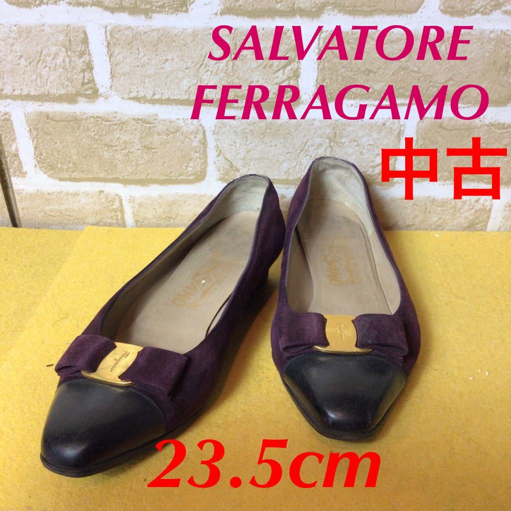 【売り切り!送料無料!】A-175 SALVATORE FERRAGAMO!Ferragamo!パンプス!スエード!23.5cm!パープル系!ローヒール!形崩れあり!中古!