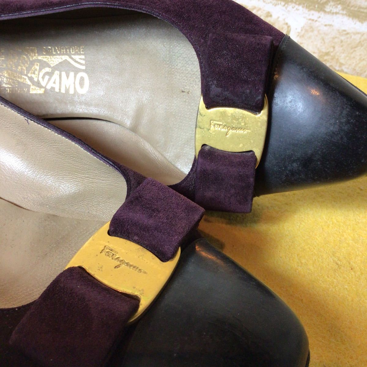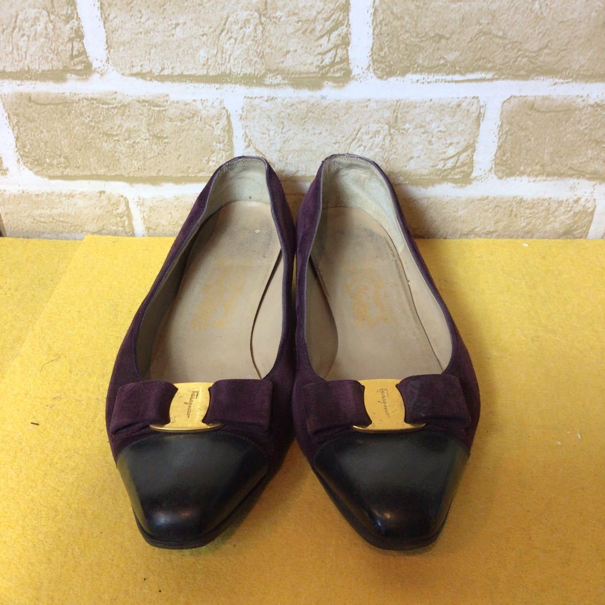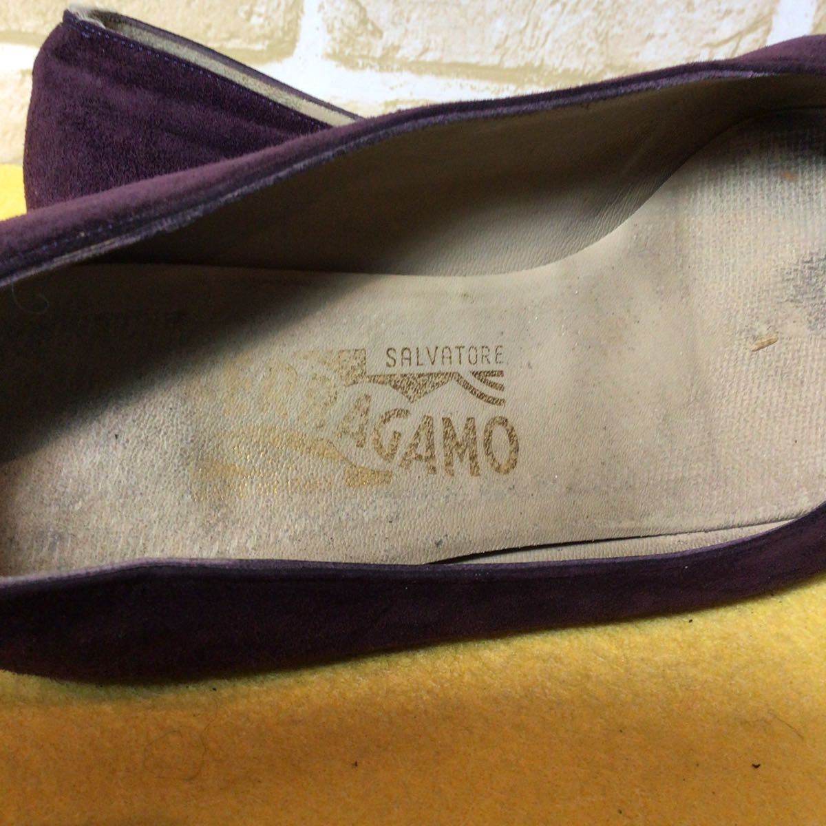 【売り切り!送料無料!】A-175 SALVATORE FERRAGAMO!Ferragamo!パンプス!スエード!23.5cm!パープル系!ローヒール!形崩れあり!中古!