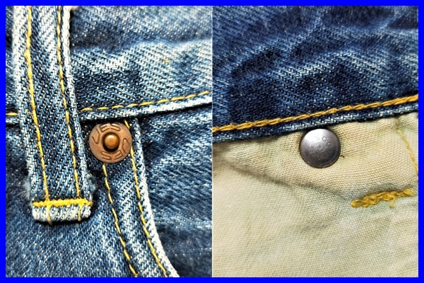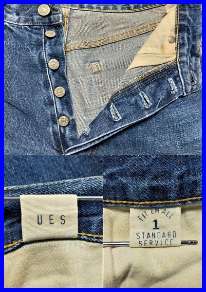 送料無料でお送りいたします(同梱不可)。 他の発送(宅急便など)をご希望の場合は送料を連絡いたしますので、 取引メッセージよりご連絡ください。 スタイル:ストレート カラー:USEDインディゴ サイズ:表記なし(W29相当) 【実寸】 股下 82(チェーンステッチ) 股上 27 胴囲 72 裾幅 21 (当方素人採寸による実測のため、多少の誤差があるかと思います。ご容赦下さい。) ■ランク:C ■フロントボタンフライ、セルビッチ、 コインポケット裏セルビッチ、フロントVステッチ ■備考 ※古着ジーンズとして程よいUSED感で穿きやすいです。 ※裾上にロールアップ時のスレ跡ありです(画像あり)。 ※パッチが縮んでいてヒビ割れ箇所ありです(画像あり)。 ※裾にステッチホツレありです(画像あり)。 ※他には目立つ汚れやダメージはなく状態はまずまずです。 ※素材は表記なしですが、恐らく綿100%、生地はデニム地です。 ※旧UESの日本製、正規品です。 ※アメカジ定番アイテムですので流行にとらわれず永くご愛用いただけます。 ※完璧なお品をお求めの方、また中古品にご理解のない神経質な方におきましては、 恐れ入りますがご入札をお控え頂けますようお願い申し上げます。 -------------------------------------------- N:新品 S:未使用or新品同様のお品 A:コンディション良好な美品 B:使用感の有るまずまず良好なお品 C:全体的に使用感の有るお品 D:状態が悪く強い使用感の有るお品 J:ジャンク品or難有り品 UESというネーミングは、 屑(くず)・ごみといった廃品、wasteから来ています。 昔から日本でも鉄工場や整備工場などで機械の 汚れをとるための 雑巾(着古した服を再利用したもの)を”ウエス”と呼んでいます。 製品たちが使命を果たす前にクローゼットで眠ることなく、 最後(ウエスになる)まで活用していただける事を願いながら物作りしています。 | |