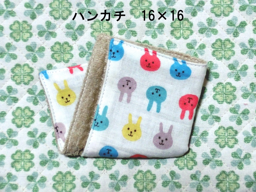 ★307★うさぎ★小さめハンカチ★16×16㎝★ダブルガーゼタオル★handmade★