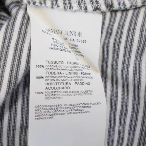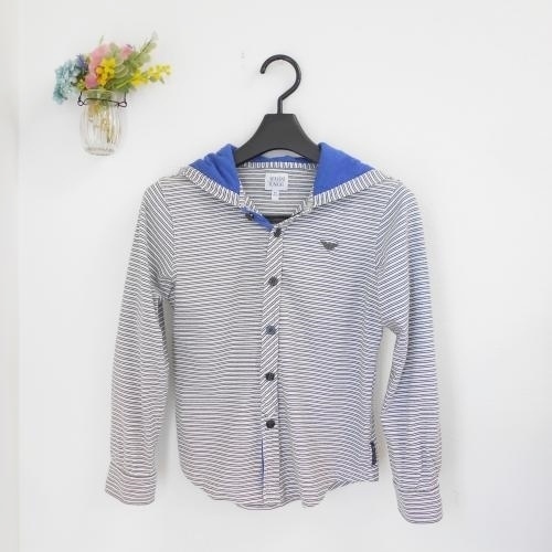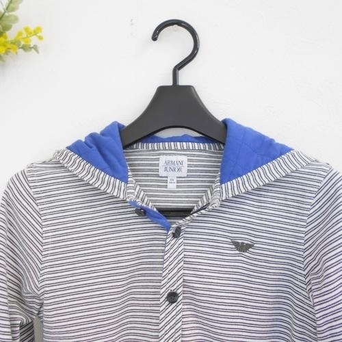 アルマーニジュニア ARMANI JUNIOR 8A 130cm キッズ 男の子 長袖 フード付き パーカー 綿 100% 白 ホワイト 黒 ブラック ボーダー ブルー トップス