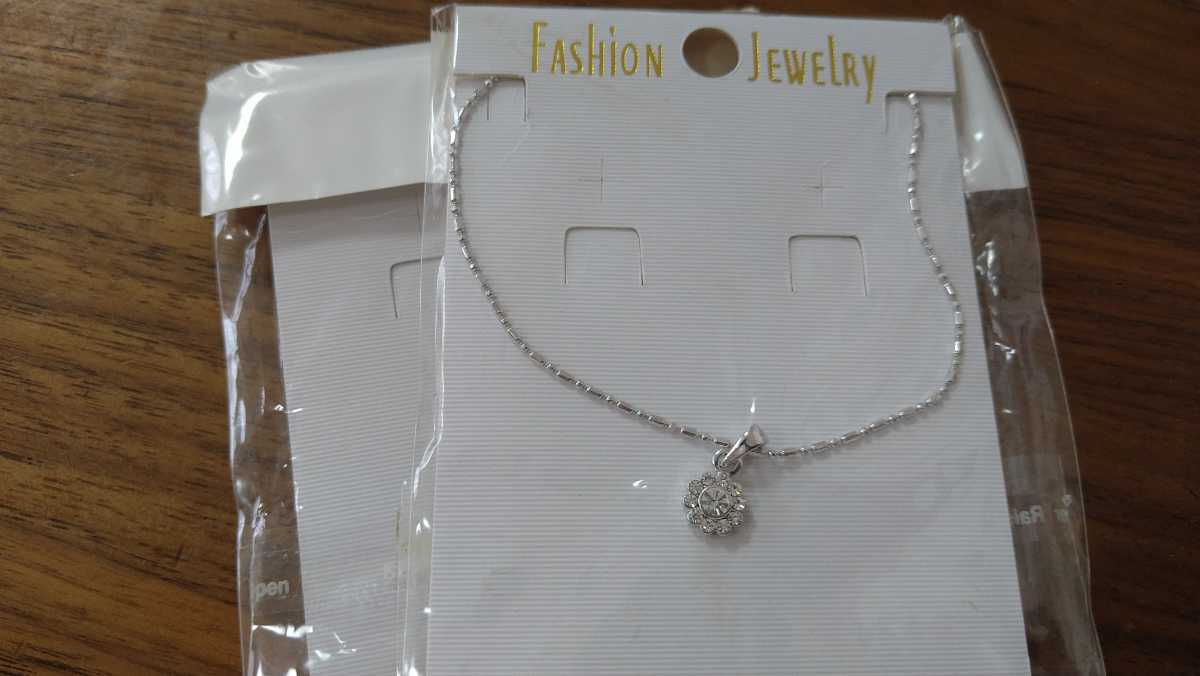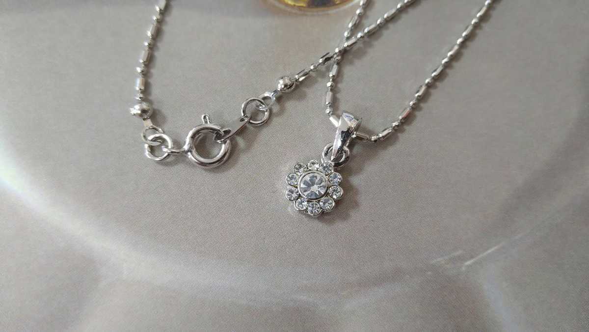 クリア×ラインストーンのフラワーネックレスです
