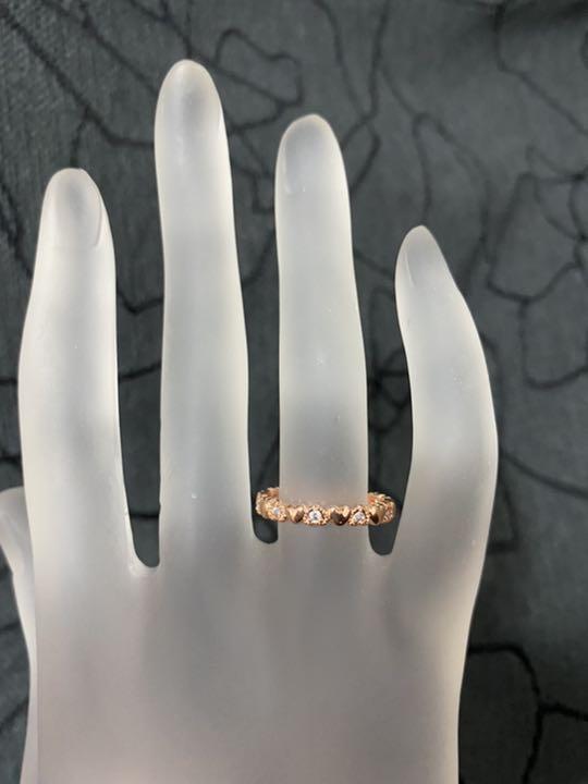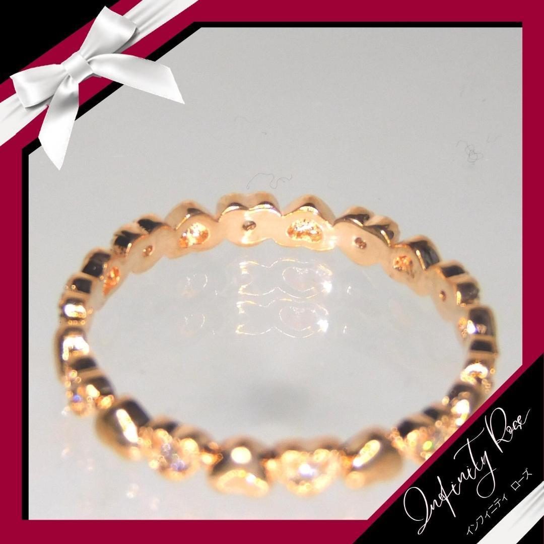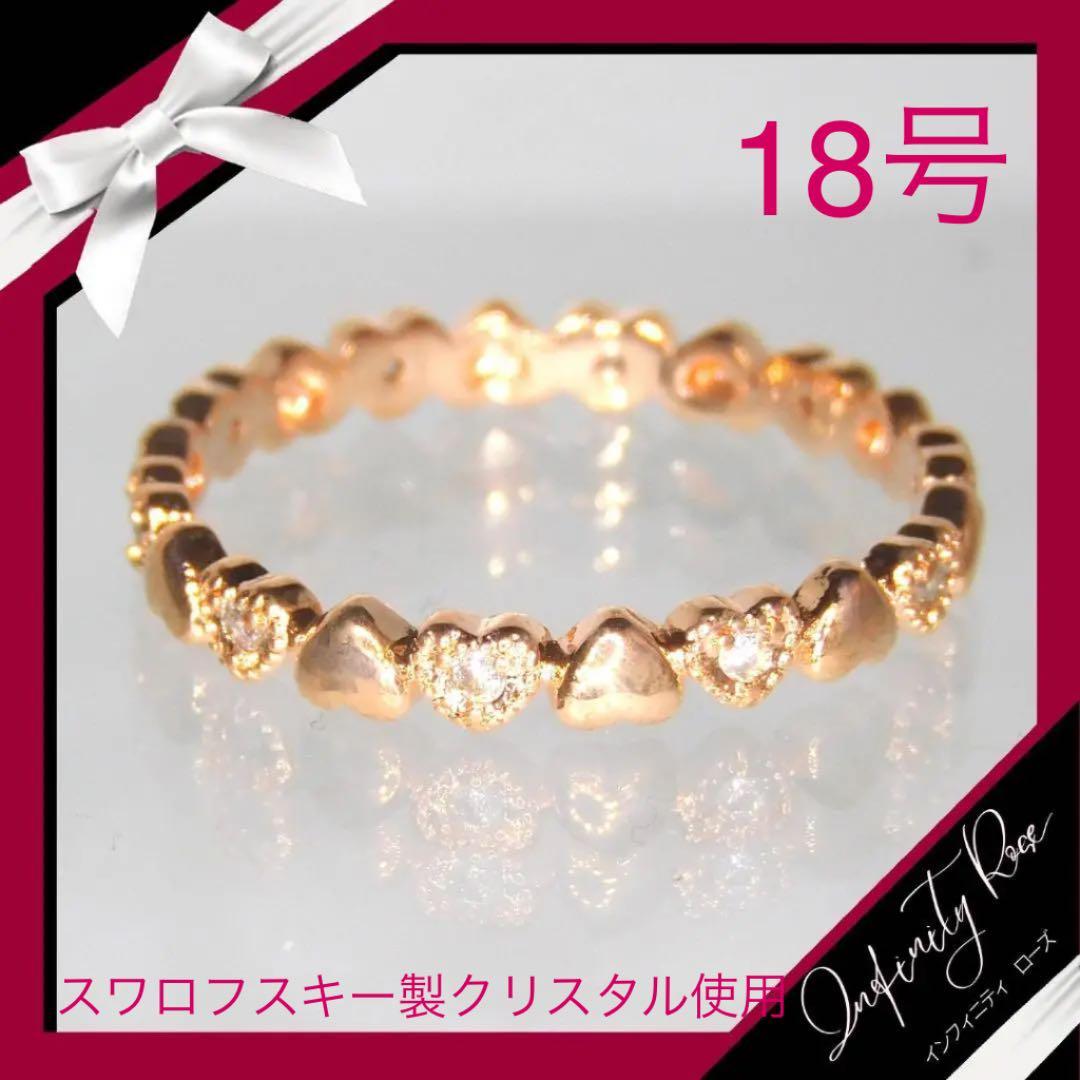 (1048)18号 ピンクゴールド 落ち着いたハート小粒リング 大人系 スワロフスキー製クリスタル使用