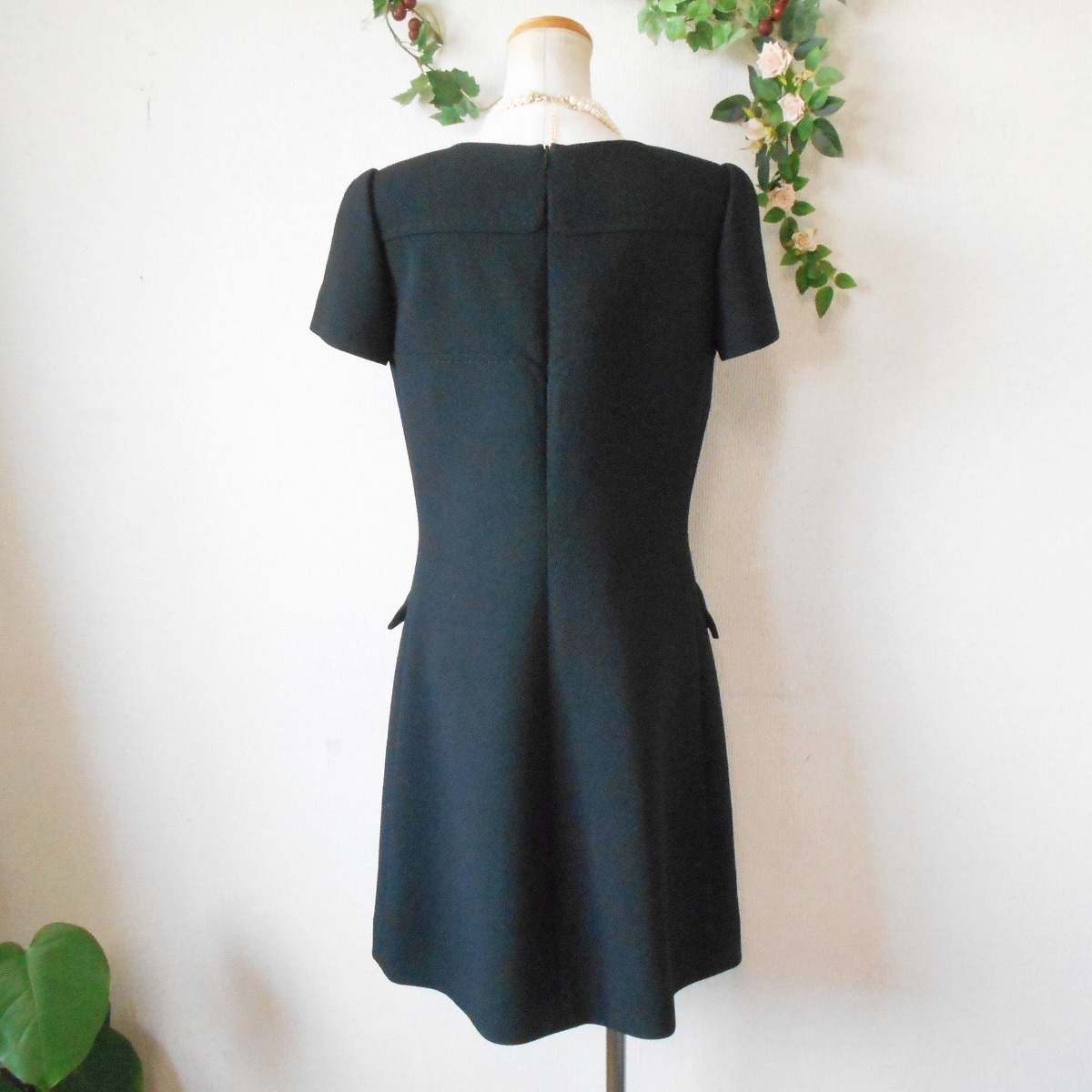 美品 フォクシー FOXEY ウール 100% 厚手 半袖 ワンピース 黒 日本製 40