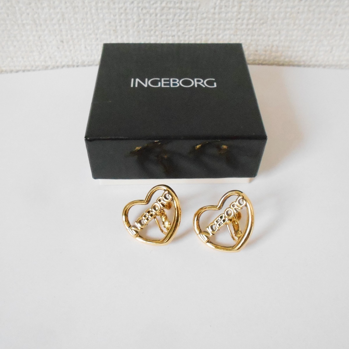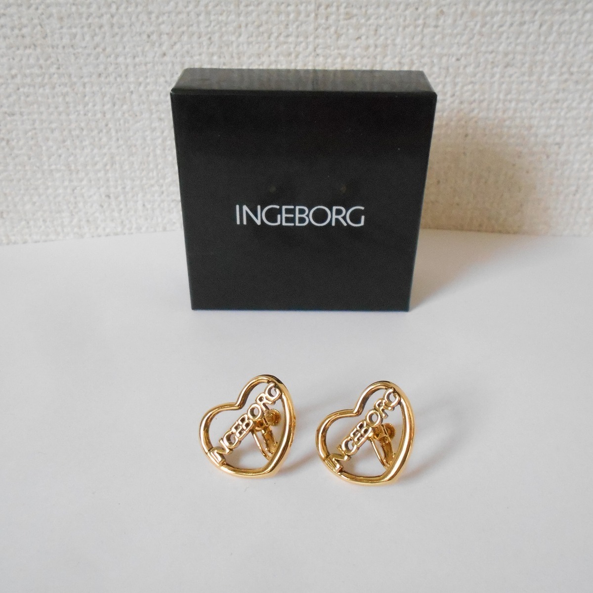 美品 インゲボルグ INGEBORG ハート型 ロゴ 入り イヤリング