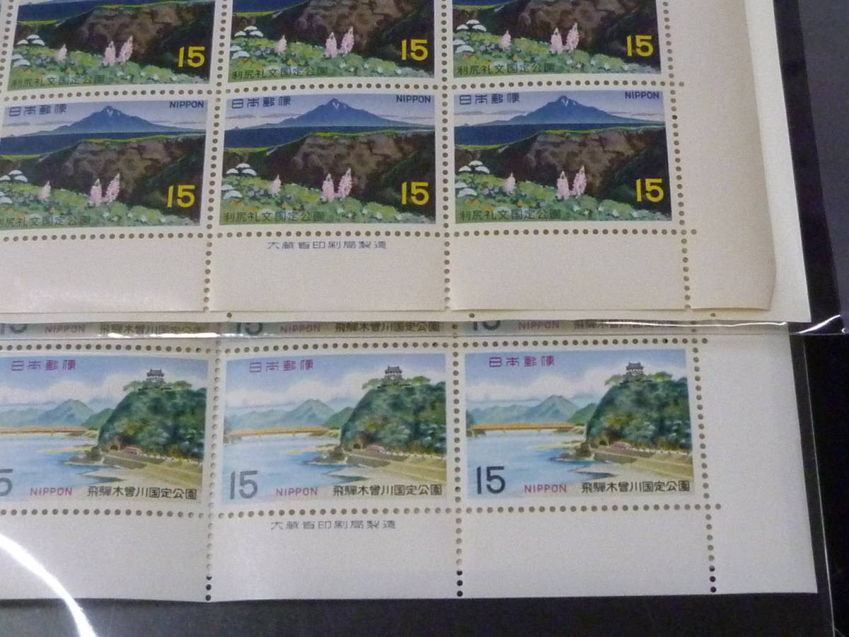 22 P 日本切手 1967-69年 国定公園 定28-40の内 15円 20面シート 計11種 未使用NH・目打ち離れ等有