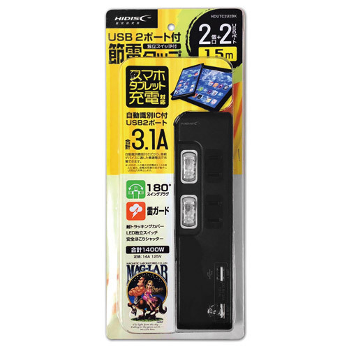 自動識別IC付スマホタブレット充電対応 USB2ポート付 |
