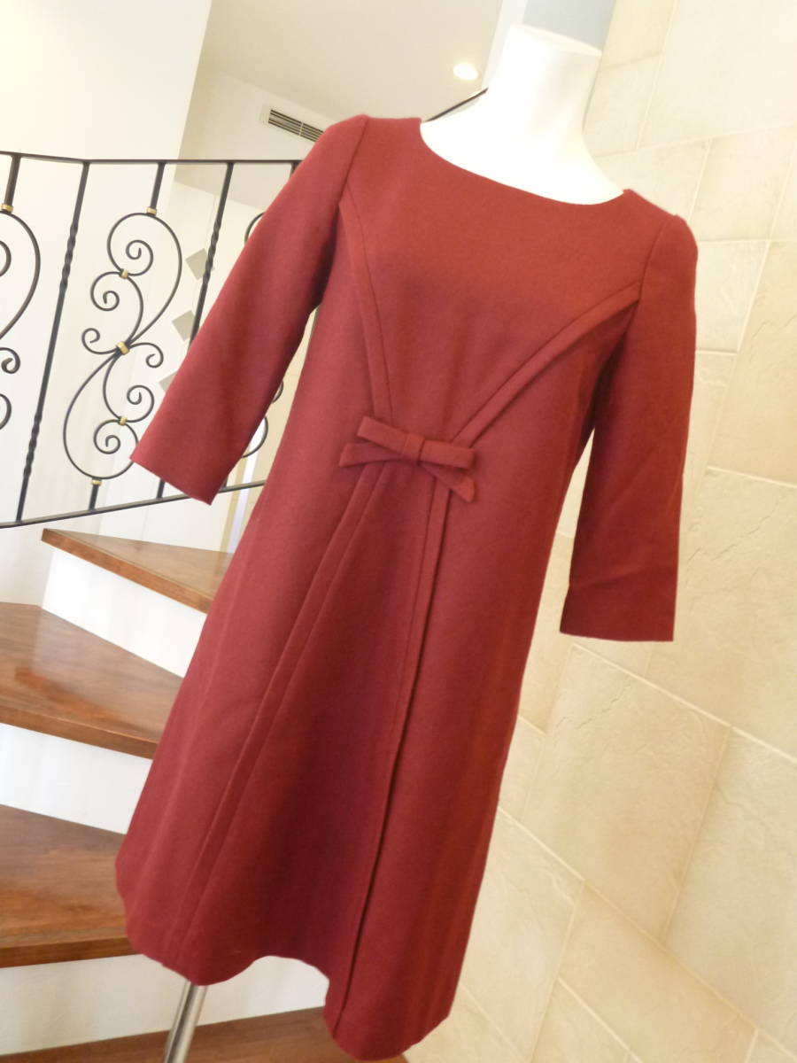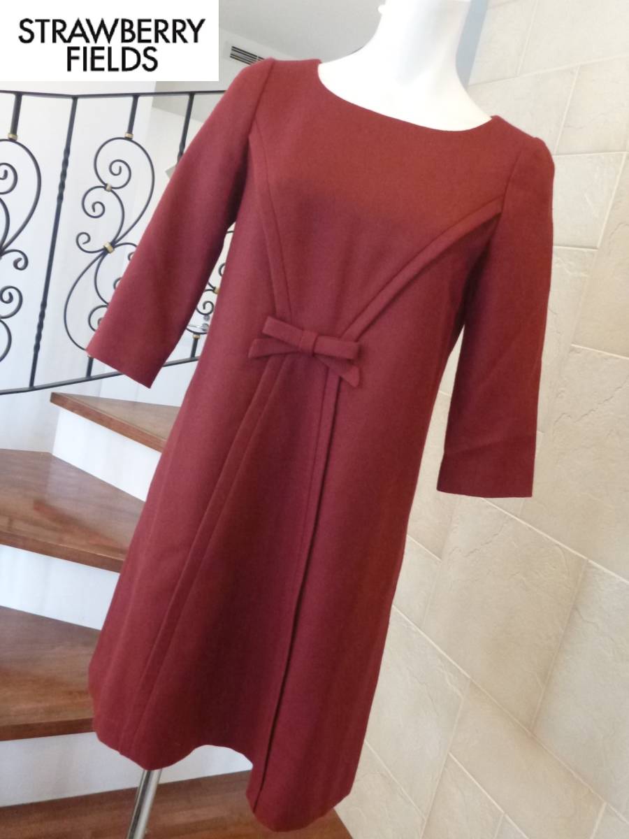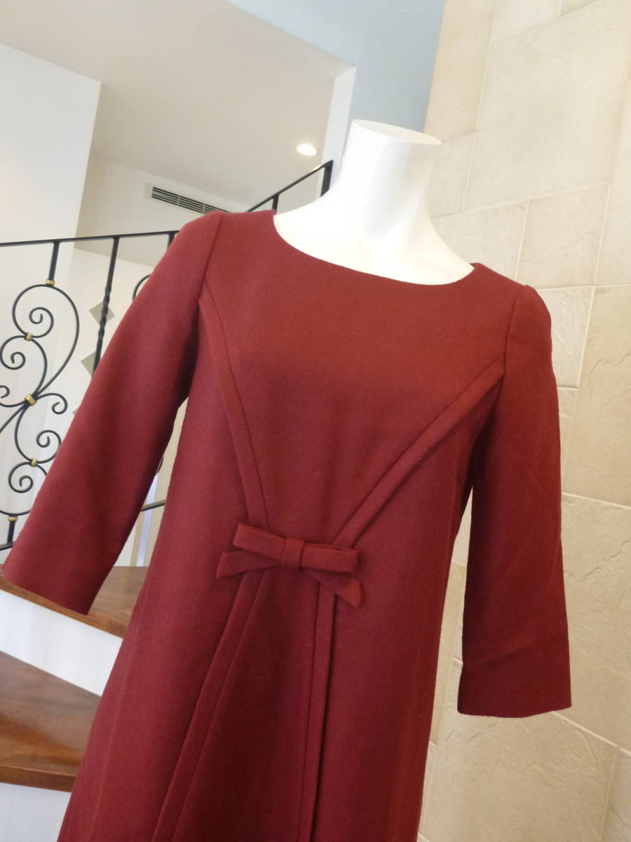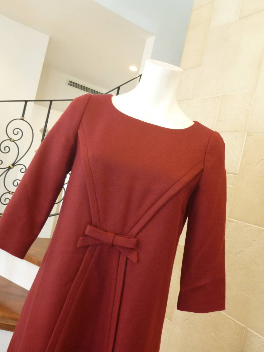 3万 美品 STRAWBERRY-FIELDS ストロベリーフィールズ★ボルドー リボン ワンピース 2 S相当