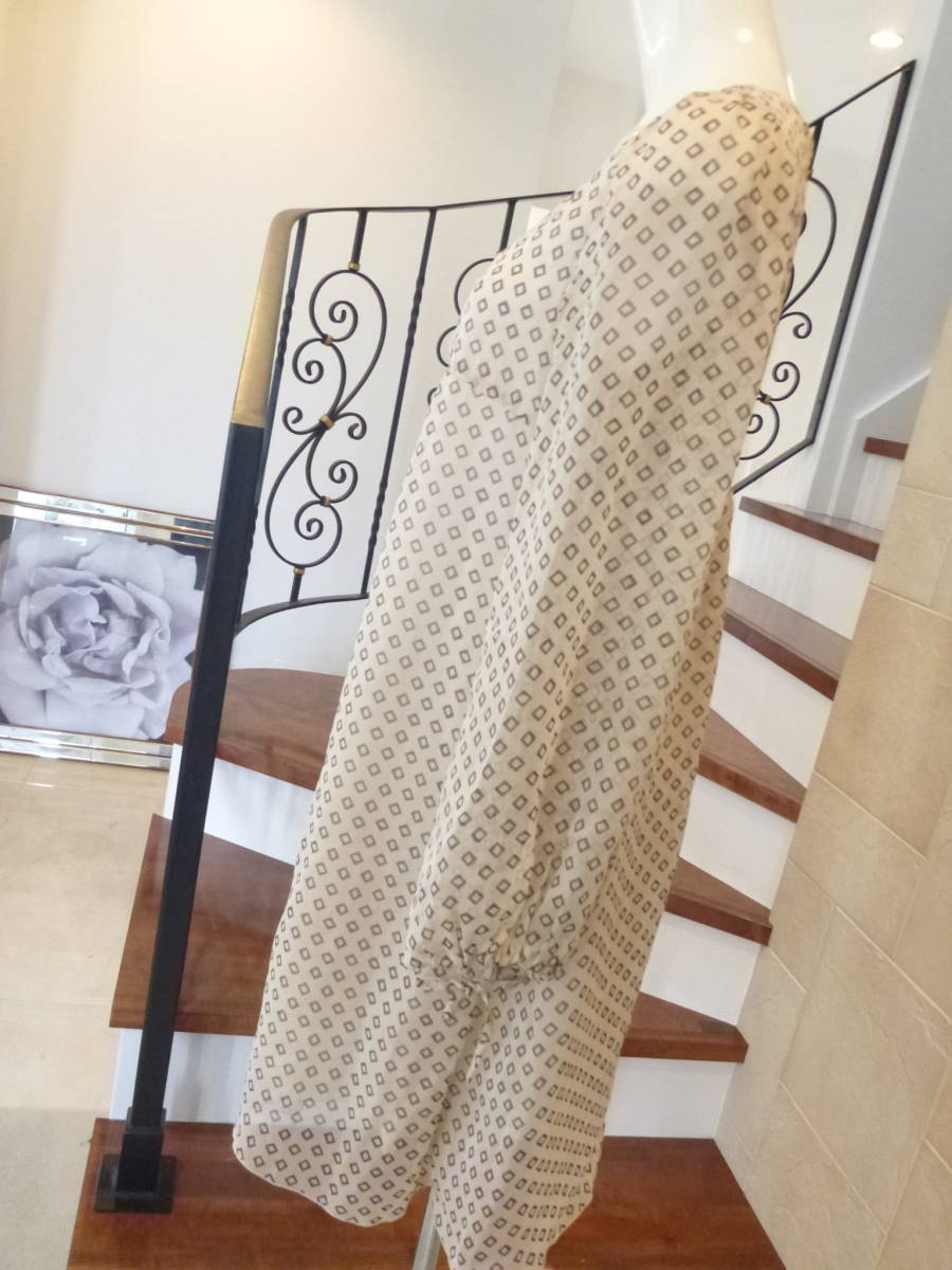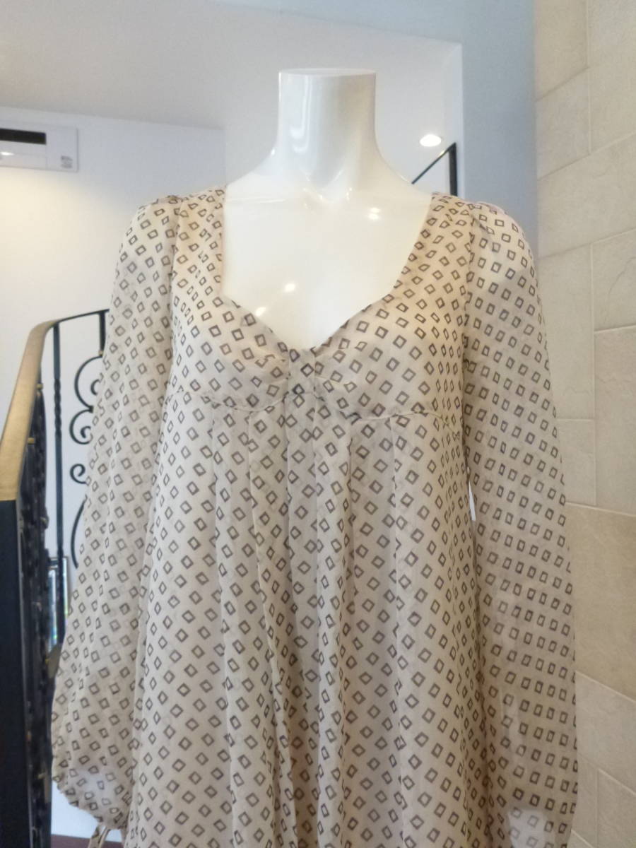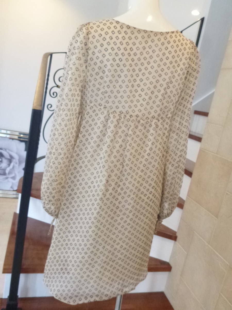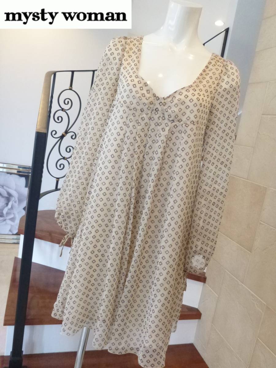 美品 mysty woman(ミスティウーマン)★ベージュ×茶 長袖 ワンピース M