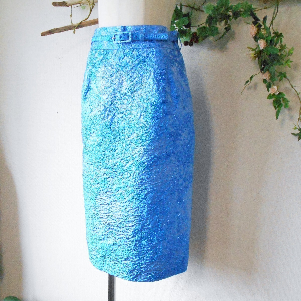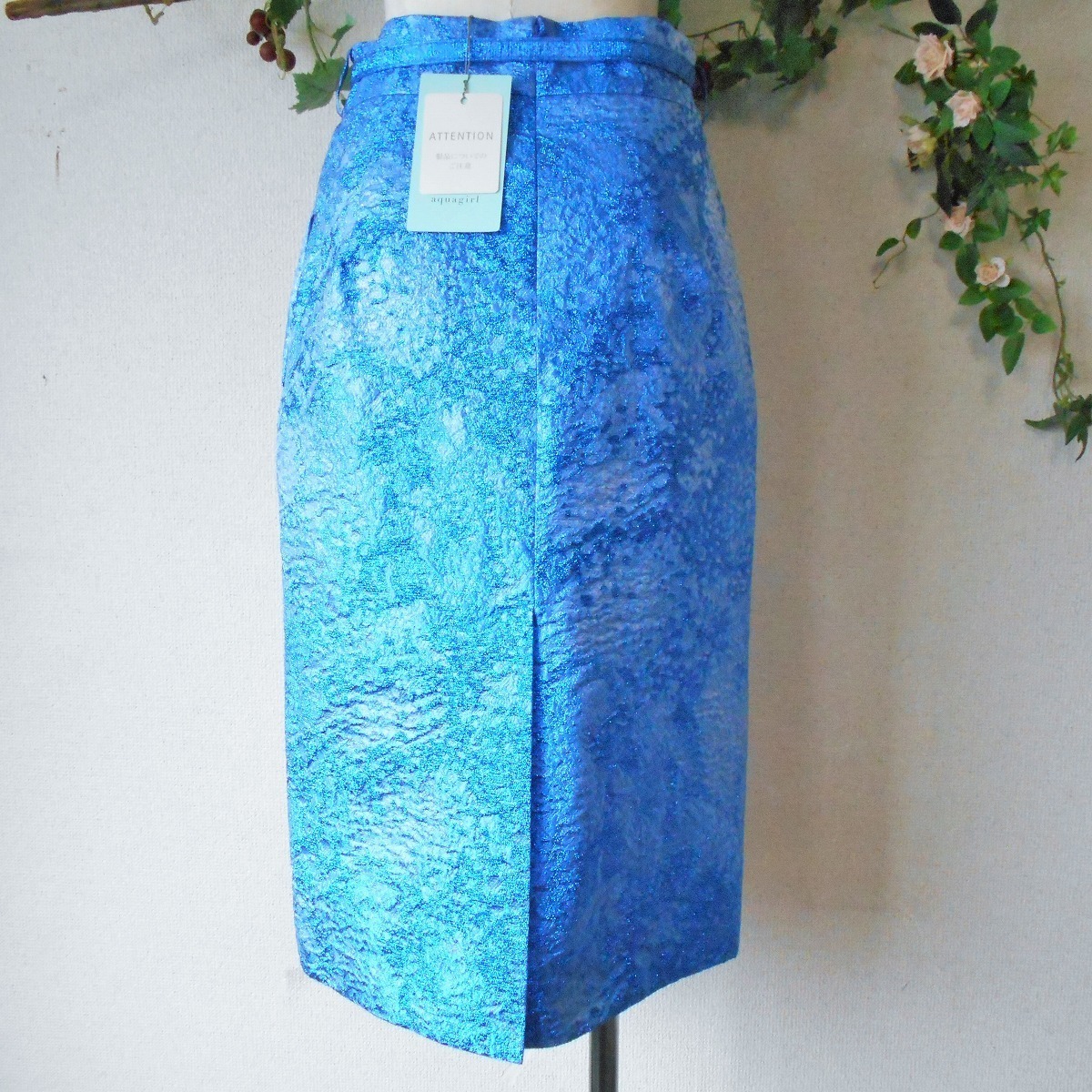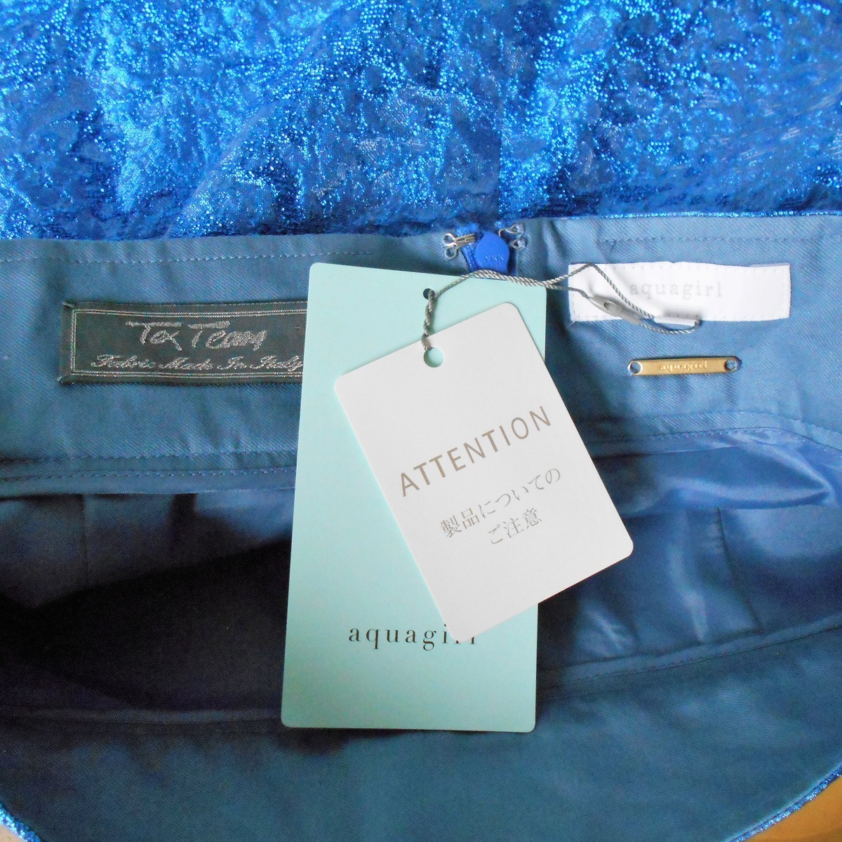 新品 タグ付き 28000円 アクアガール aquagirl ベルト 付き ブルーメタリック の 素敵 な スカート 38