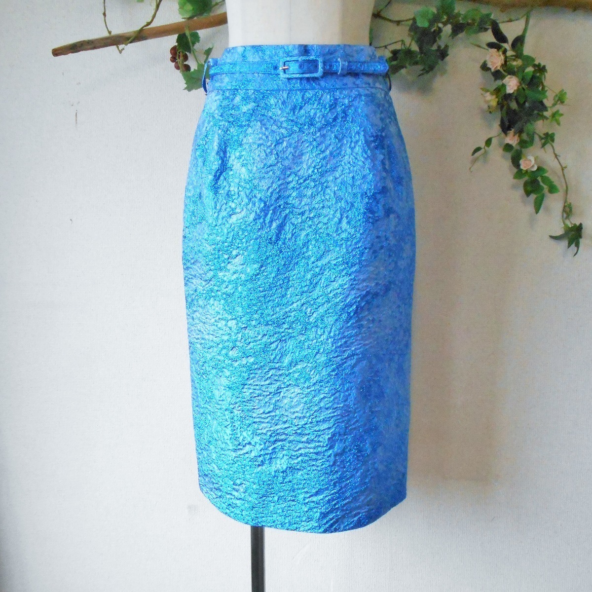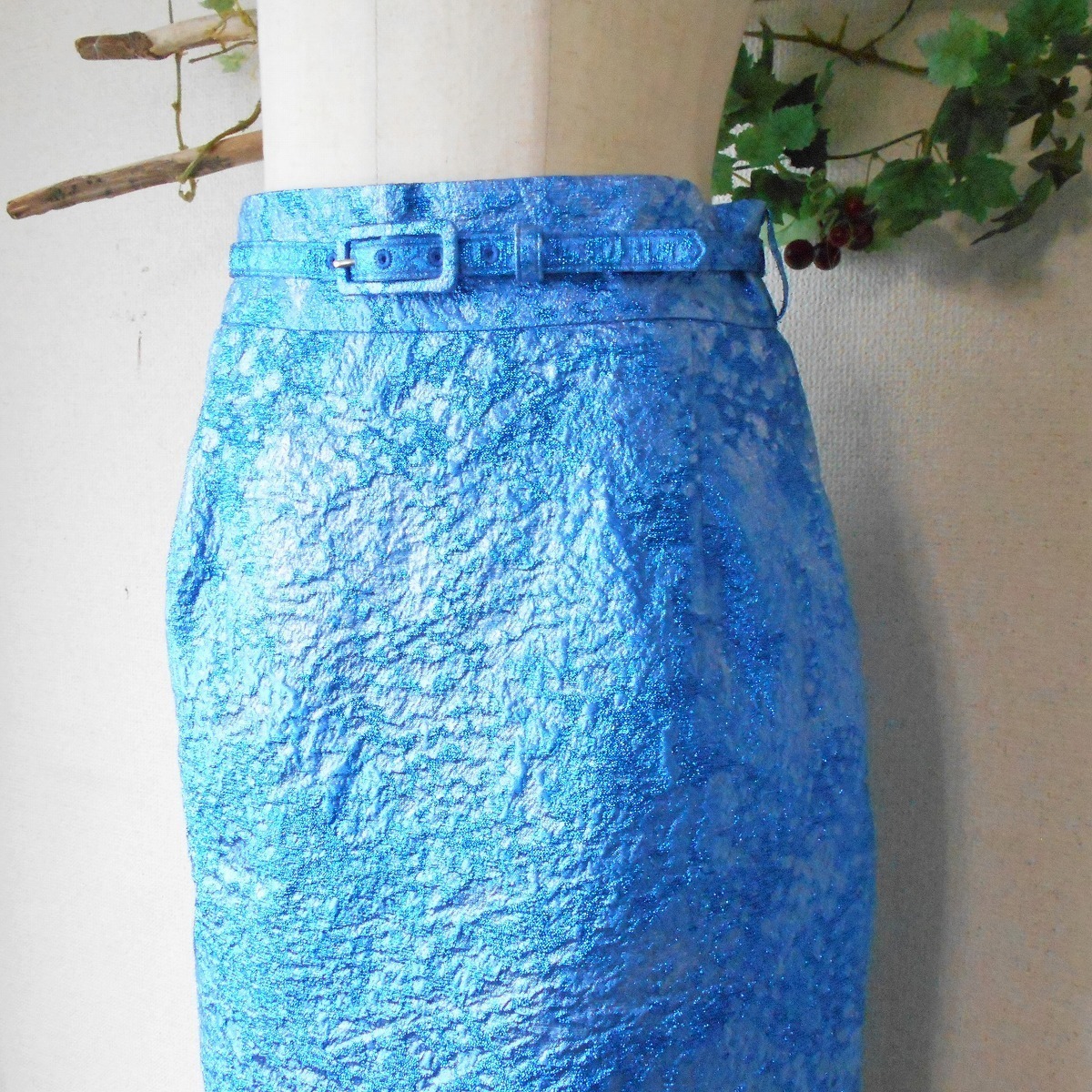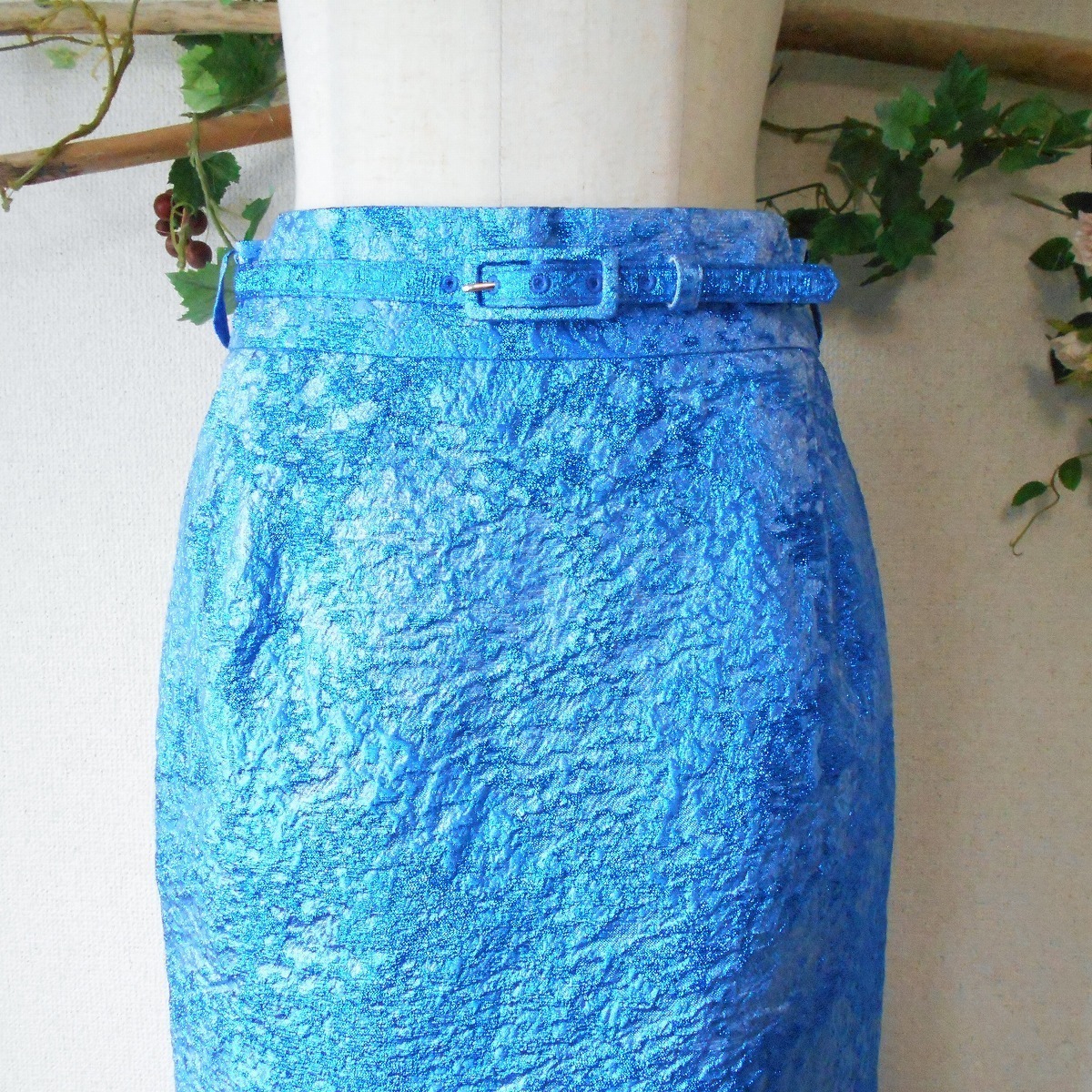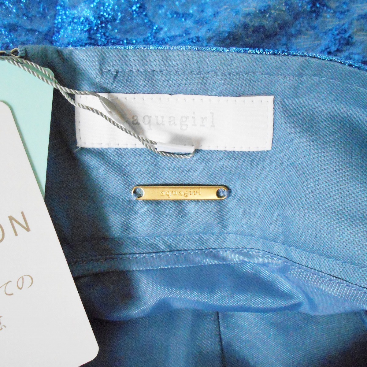 新品 タグ付き 28000円 アクアガール aquagirl ベルト 付き ブルーメタリック の 素敵 な スカート 38