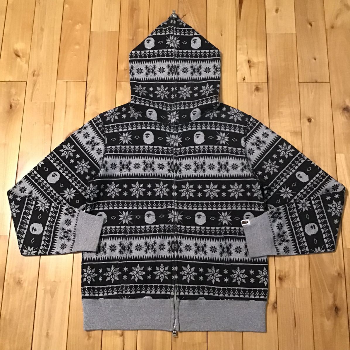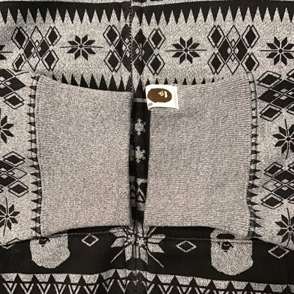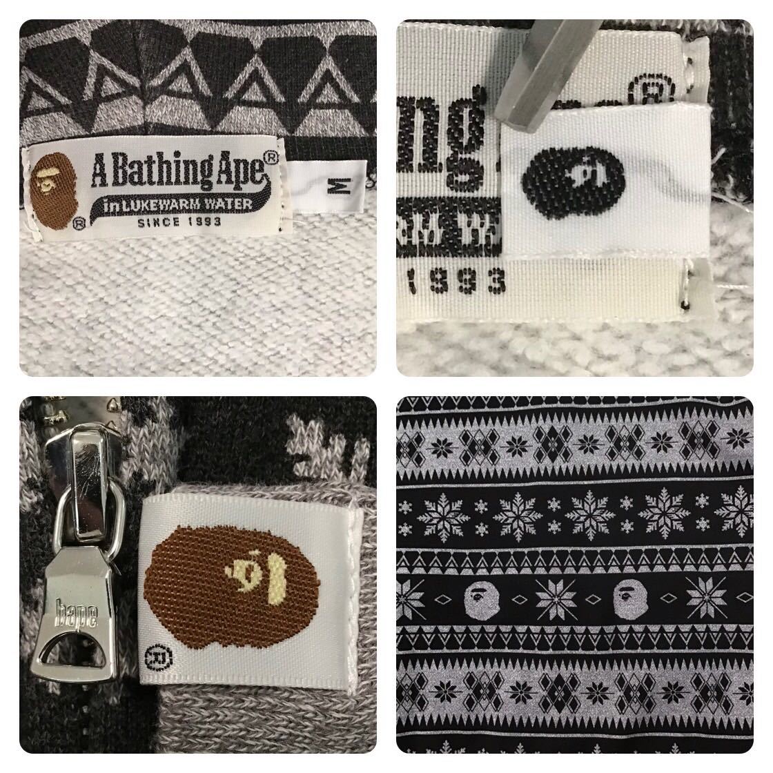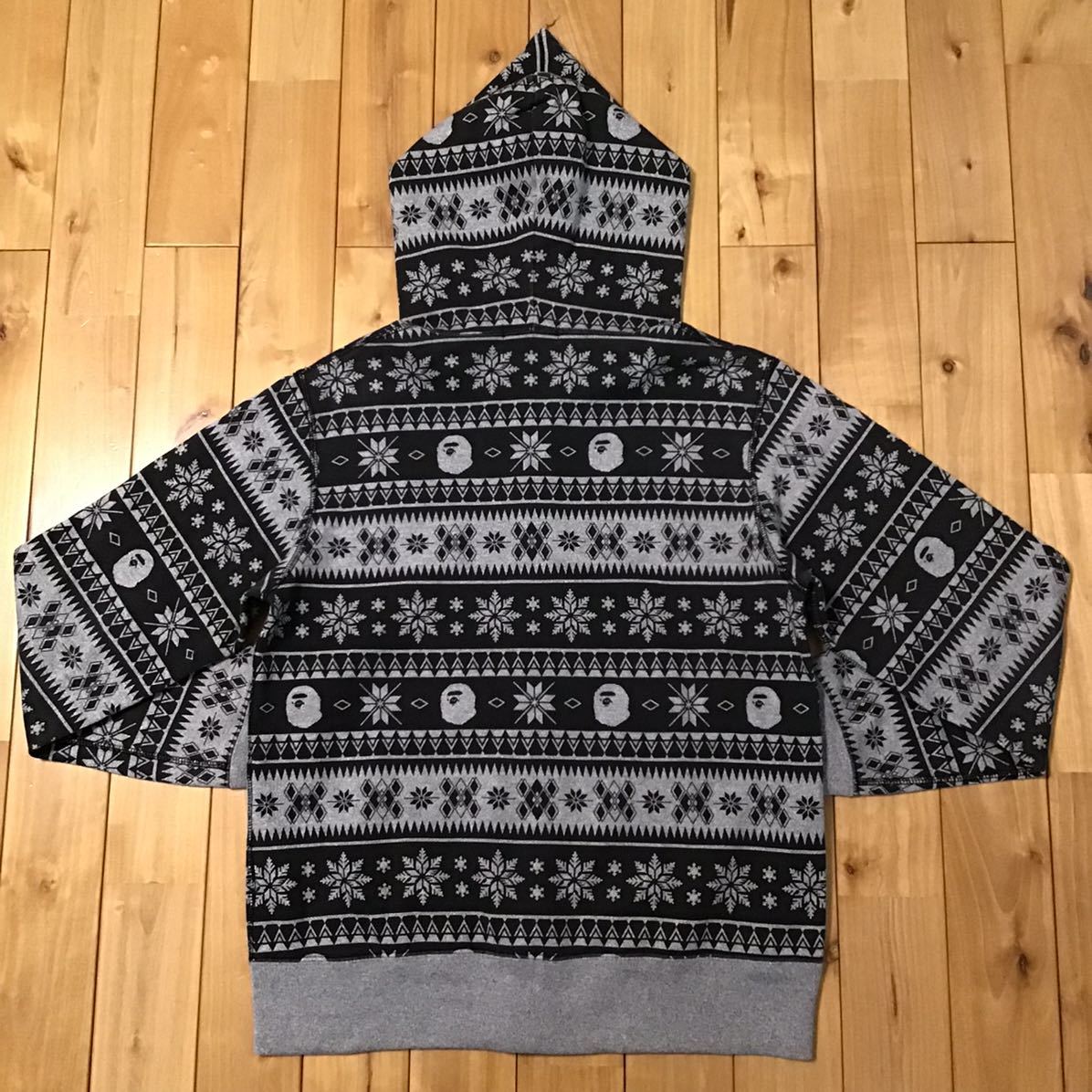 a bathing ape ノルディック柄 フルジップパーカー グレー × ブラック Mサイズ です★