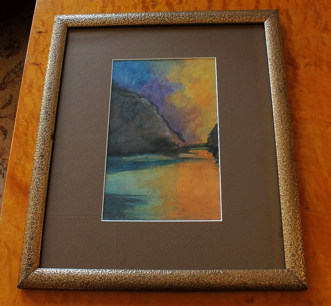 橋のある風景、厚手の和紙に描かれた水彩画です。