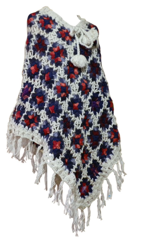 ■☆アジアン衣料 ネパール手編みモチーフポンチョ(NEP-28)