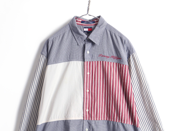 商品名 | 90s ■ トミーヒルフィガー クレイジー 切替 長袖 ボタンダウン シャツ ( メンズ L ) 古着 90年代 オールド TOMMY HILFIGER 長袖シャツ |