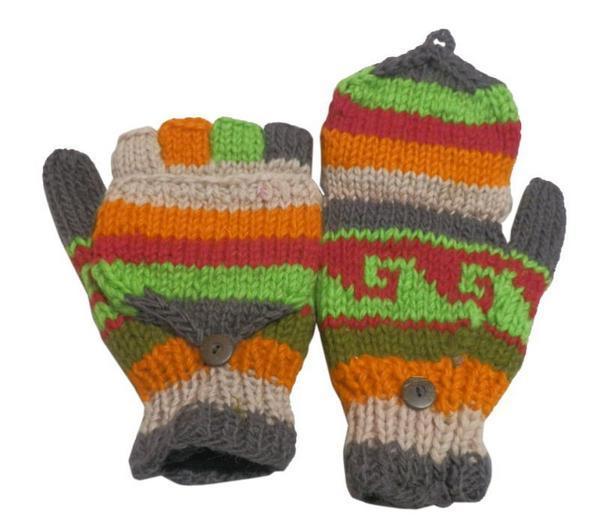■☆アジアン衣料 ネパール手編みカバー付き指なし手袋(フリース付)(NSG-5)