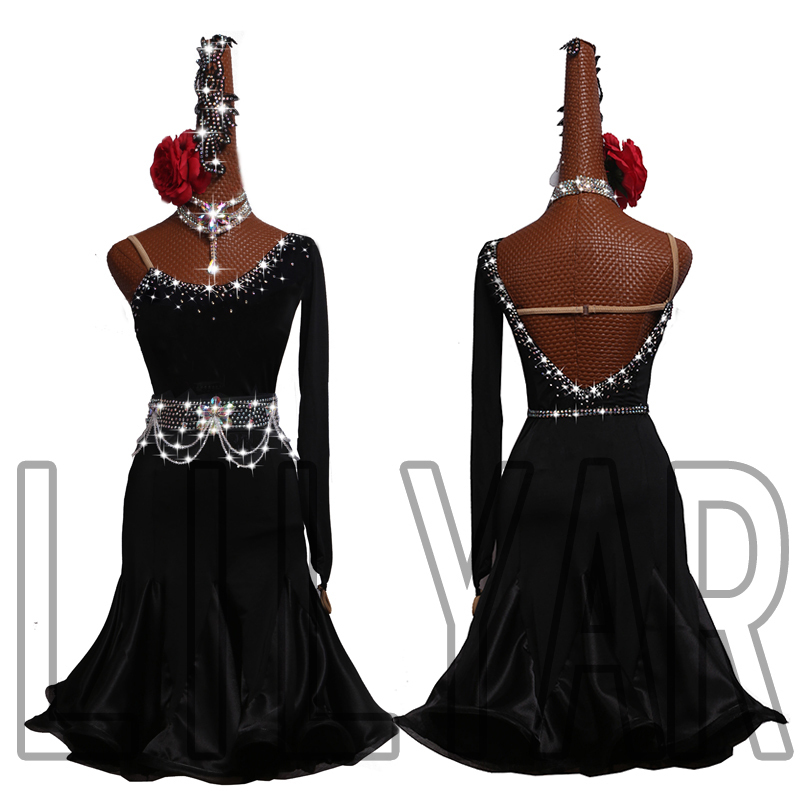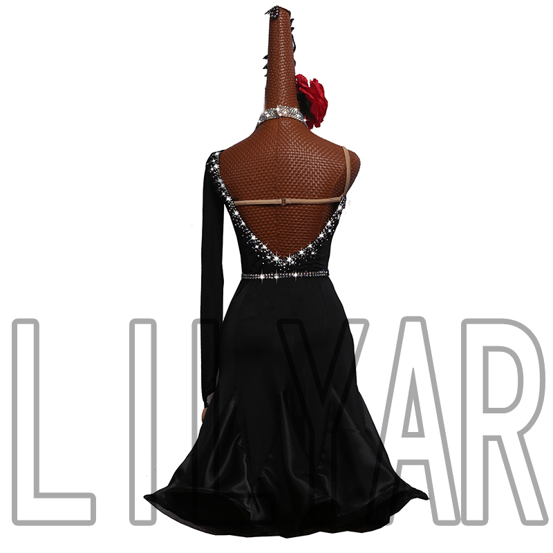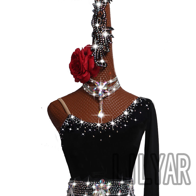 新品 レディース社交ダンス衣装 ラテンドレス サイズオーダー対応 お得のセット品 ライトストーン飾り ブラック