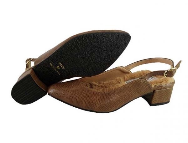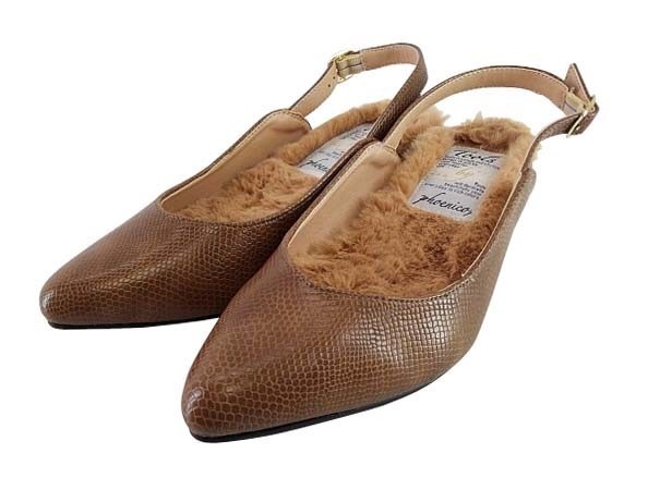 SG0682■ 新品 バブーシュサンダル ファーミュール ポインテッドトゥ チャンキーヒール 幅広4E 片足250g Mサイズ 23.0~23.5cm ブラウン