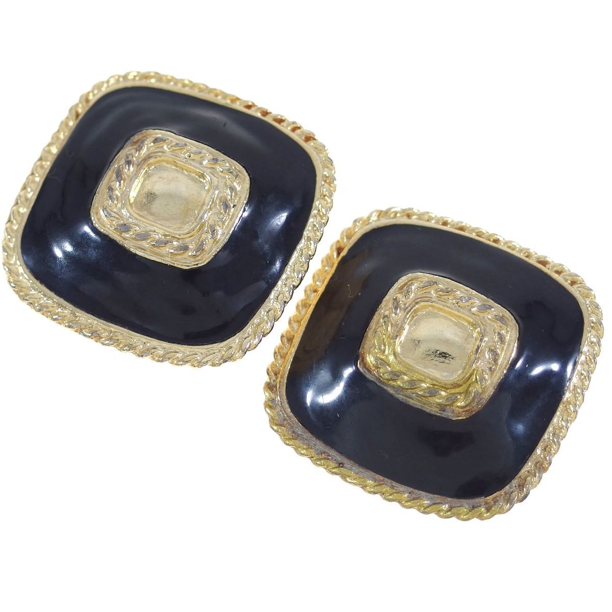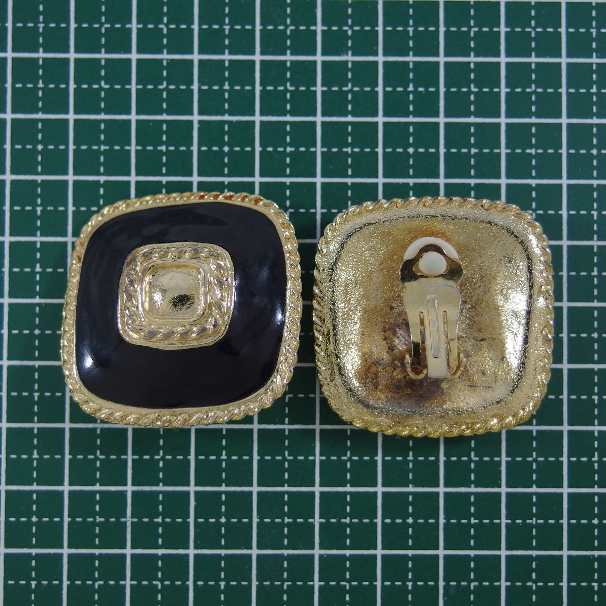 A7501◆ 大きめ * 四角 ブラックエナメルペイント ◆ ヴィンテージイヤリング ◆