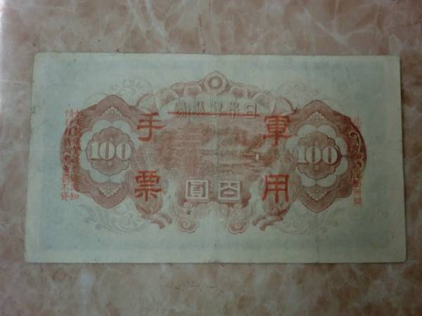 日華事変軍票 乙号100円で重ね分の印刷ズレが有ります。