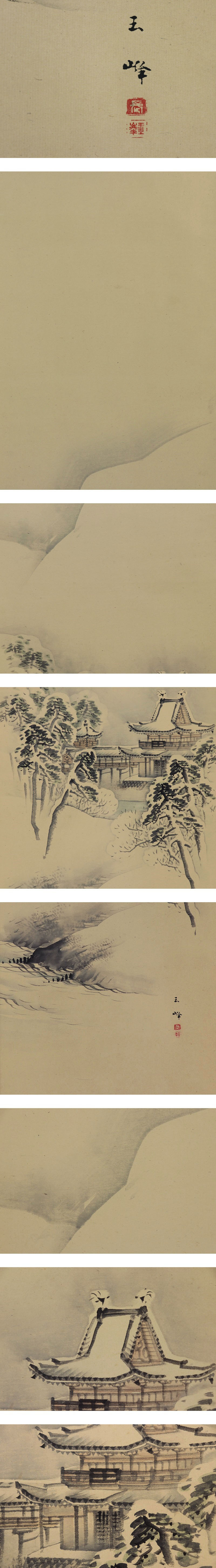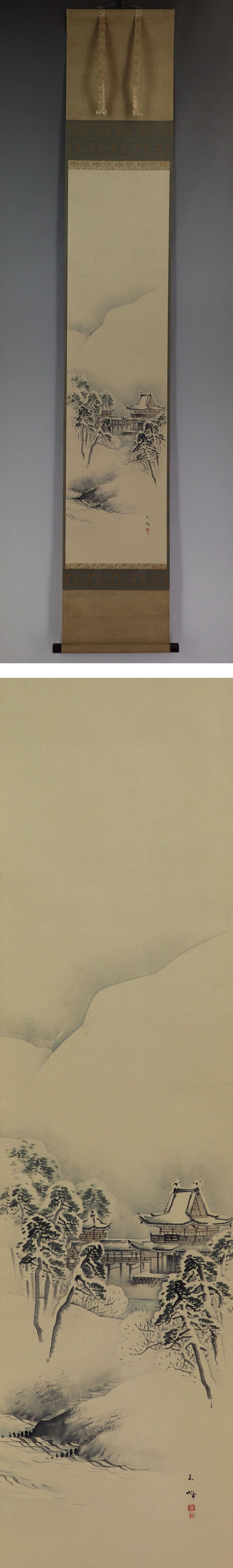 | №2110246【真作】長谷川玉峰【雪中平等院図】◆紙本◆合箱◆掛軸 | |
