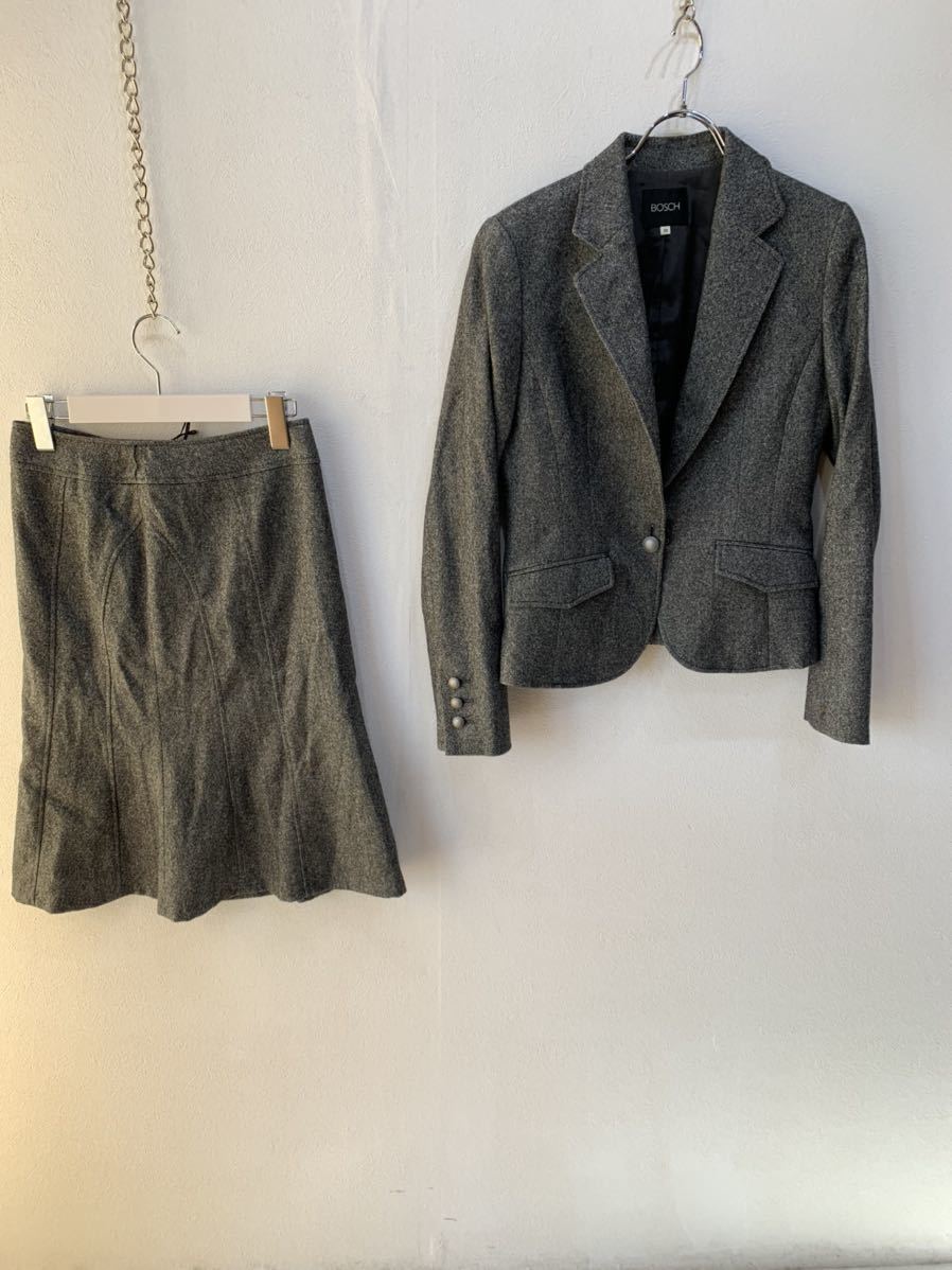 人気のBOSCH/ボッシュ スーツ 上下セット レディース38 サイズ  灰/グレー ツィード 調 ウール   K1353